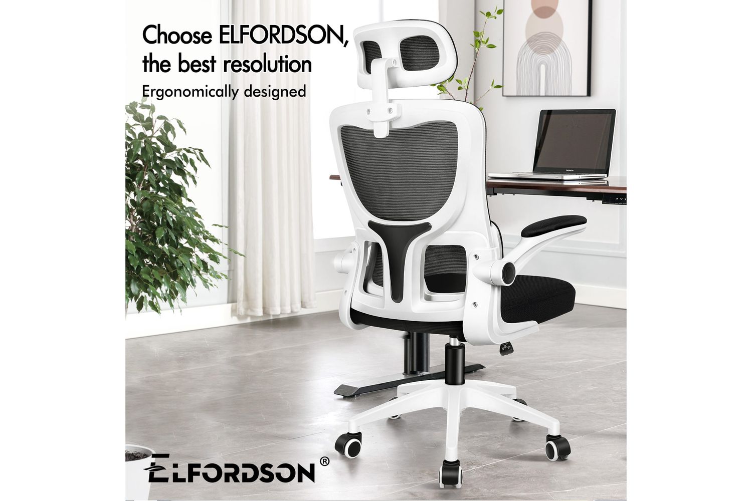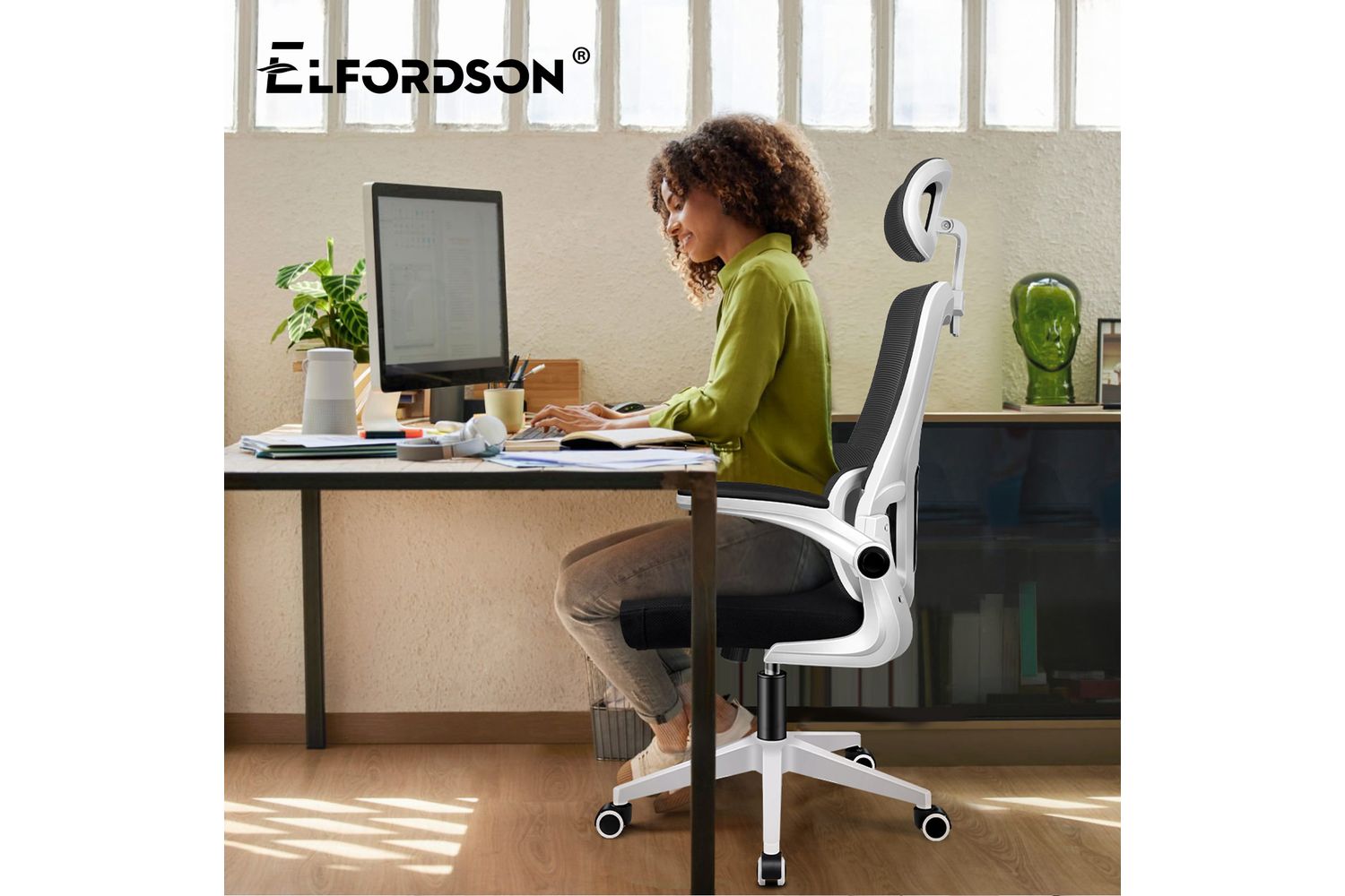 Designed for professionals spending long hours at their desk, the Elfordson Supreme Mesh Chair delivers exclusive comfort. It features an adjustable, removable headrest and self-adaptive lumbar support conforming to your spine's curvature.