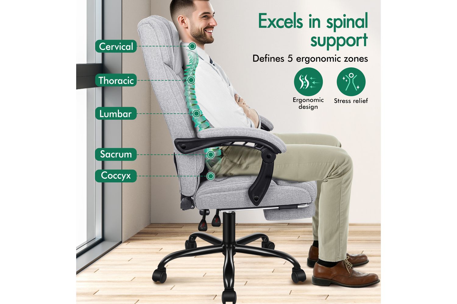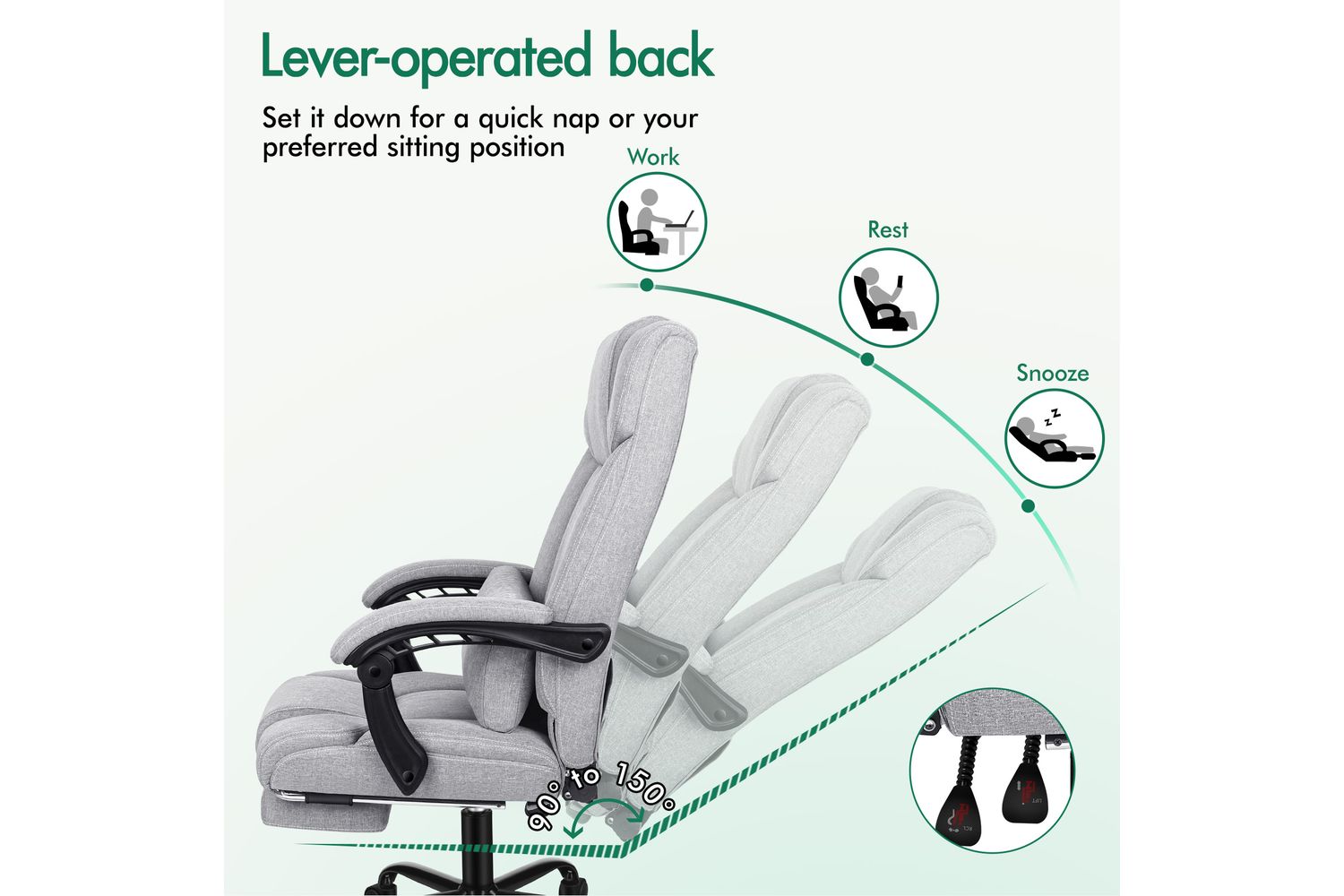 The Elfordson computer desk chair is an eternal model. It features a dual-layer back with luxurious foam paddings, to make sure you can indulge yourself each time sitting on it. Made with breathable & durable linen fabric, this modern reclining chair also enhances the atmosphere of the room it stays. An elite in quality and design, your solution to true comfort.