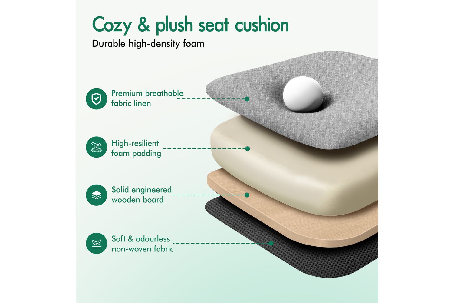 - Triple-layer seat: Linen fabric + Resilience foam + Wooden board