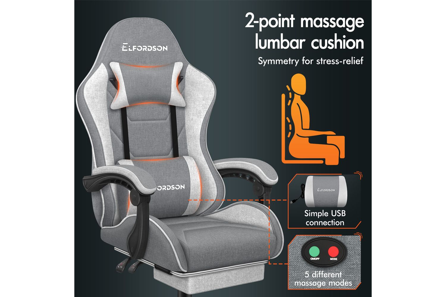 Elfordson 2-Point Massage Gaming Chair with Lumbar Cushion | Light Grey is rated