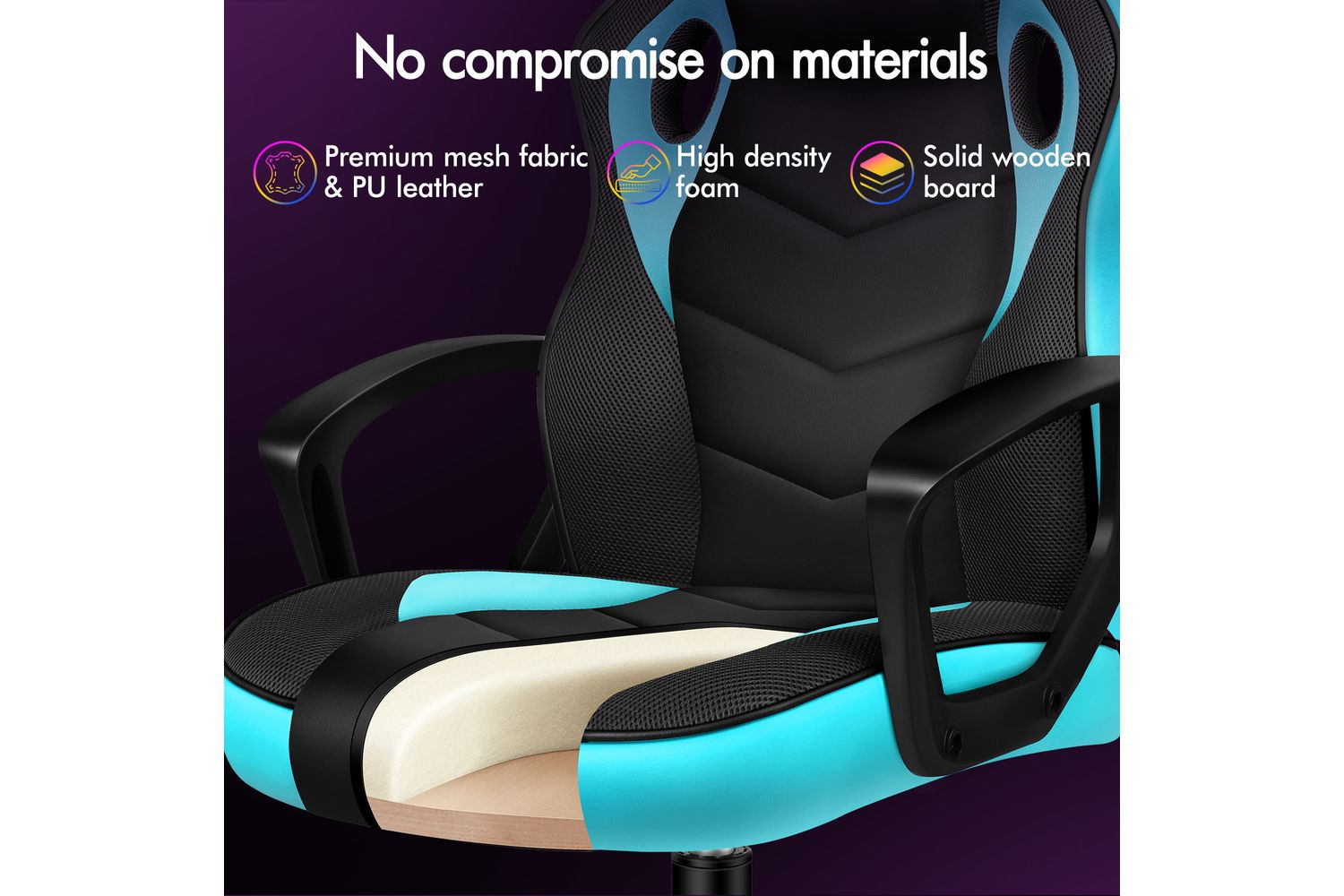 - Seat Material: Triple-layered with PU leather, mesh, Resilience Foam, and durable wooden board.