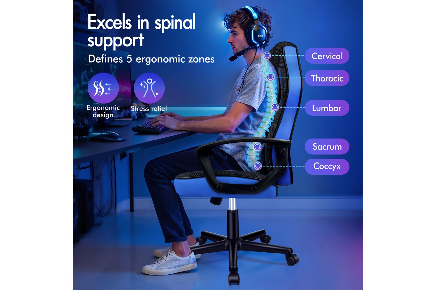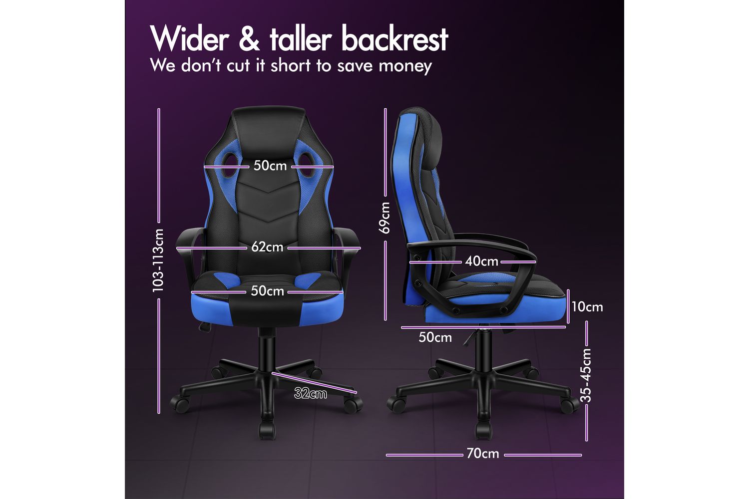 Its unique blue color and the perfect blend of resilience foam and PU Leather & Mesh of the seat further amplify its style and charm. Catering to robust usage, this superior chair supports up to 180kg weight. Upgrade your home office or elevate your gaming experience; order your ELFORDSON gaming office chair today and dive into unparalleled comfort!