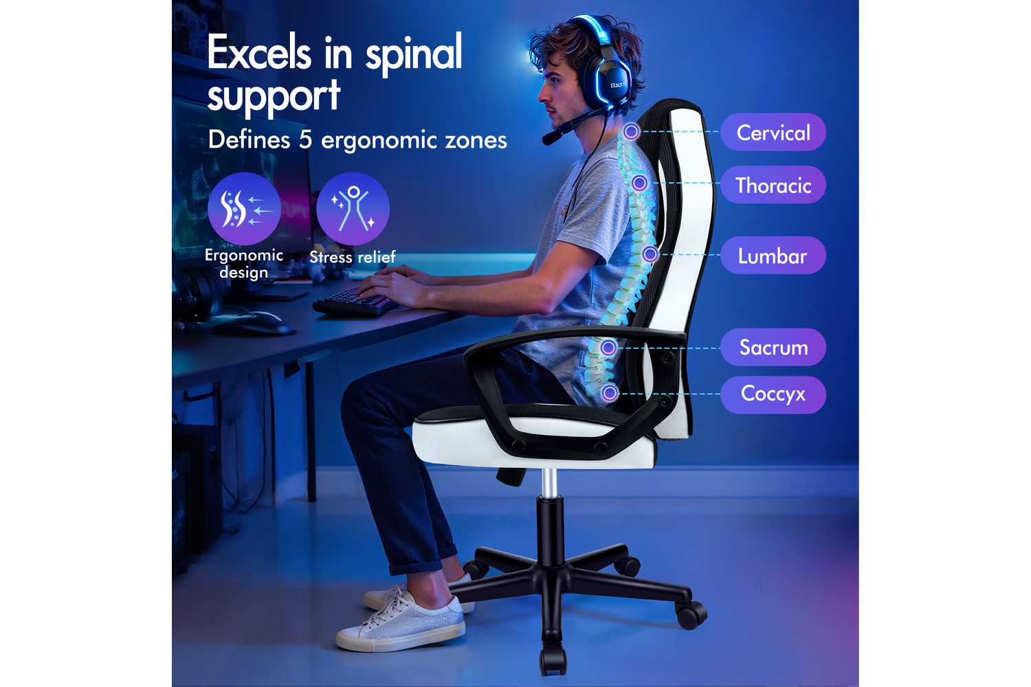 Introducing the ELFORDSON Gaming Chair. Designed for performance and comfort, this multipurpose chair delivers a superb seated experience, whether you're immersed in a gripping video game or getting through a work project. Bringing together the upscale class of PU leather upholstery and the ventilated comfort of a breathable mesh, this chair finishes off its cutting-edge design with a sleek white hue that's both modern and minimal.