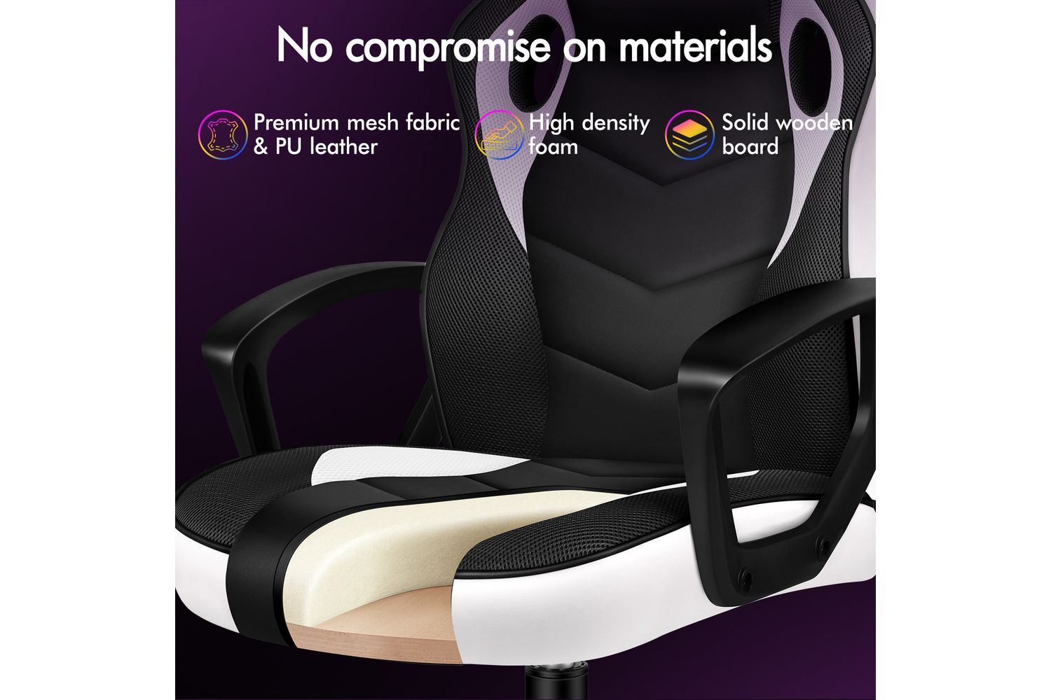 - Material of Seat: Triple-layer with PU Leather, Mesh, Resilience Foam and a Wooden Board