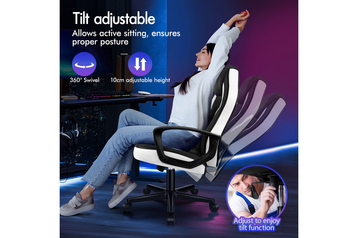 Whether it's manoeuvring in an action-packed gaming session or wheeling across the office in a fast-paced work environment, ELFORDSON Gaming Chair provides unparalleled motion adaptability and enduring comfort throughout the day. Noted for its exceptional functionality and uncompromised style – no option comes more suitable than this one for both work-at-home or office-bound Irish professionals.