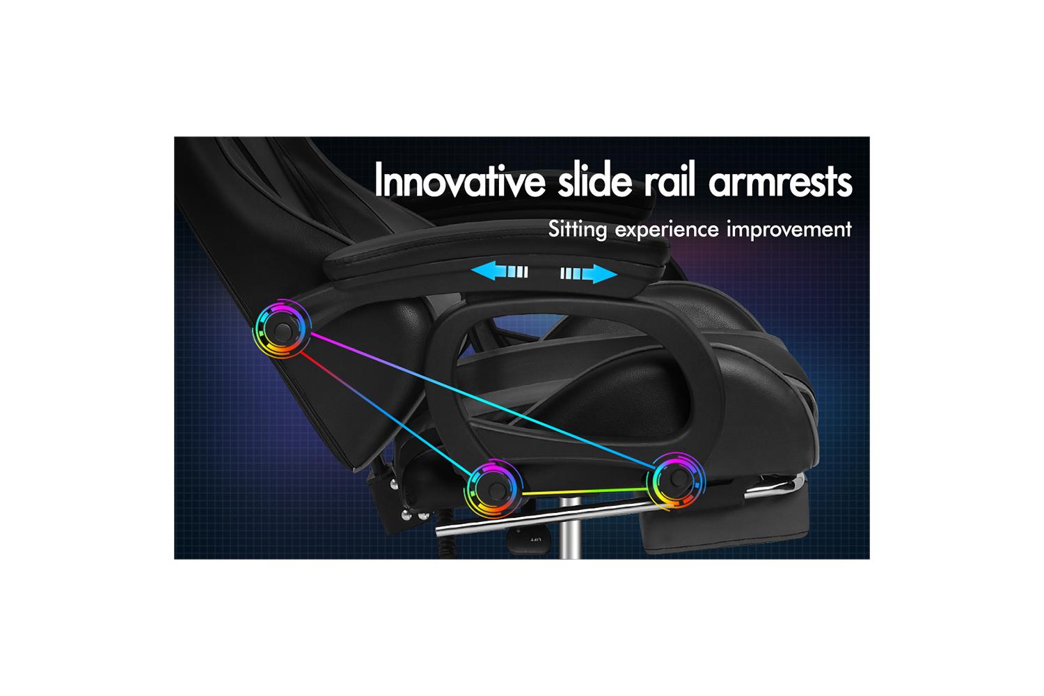 - Upgraded slide rail armrests