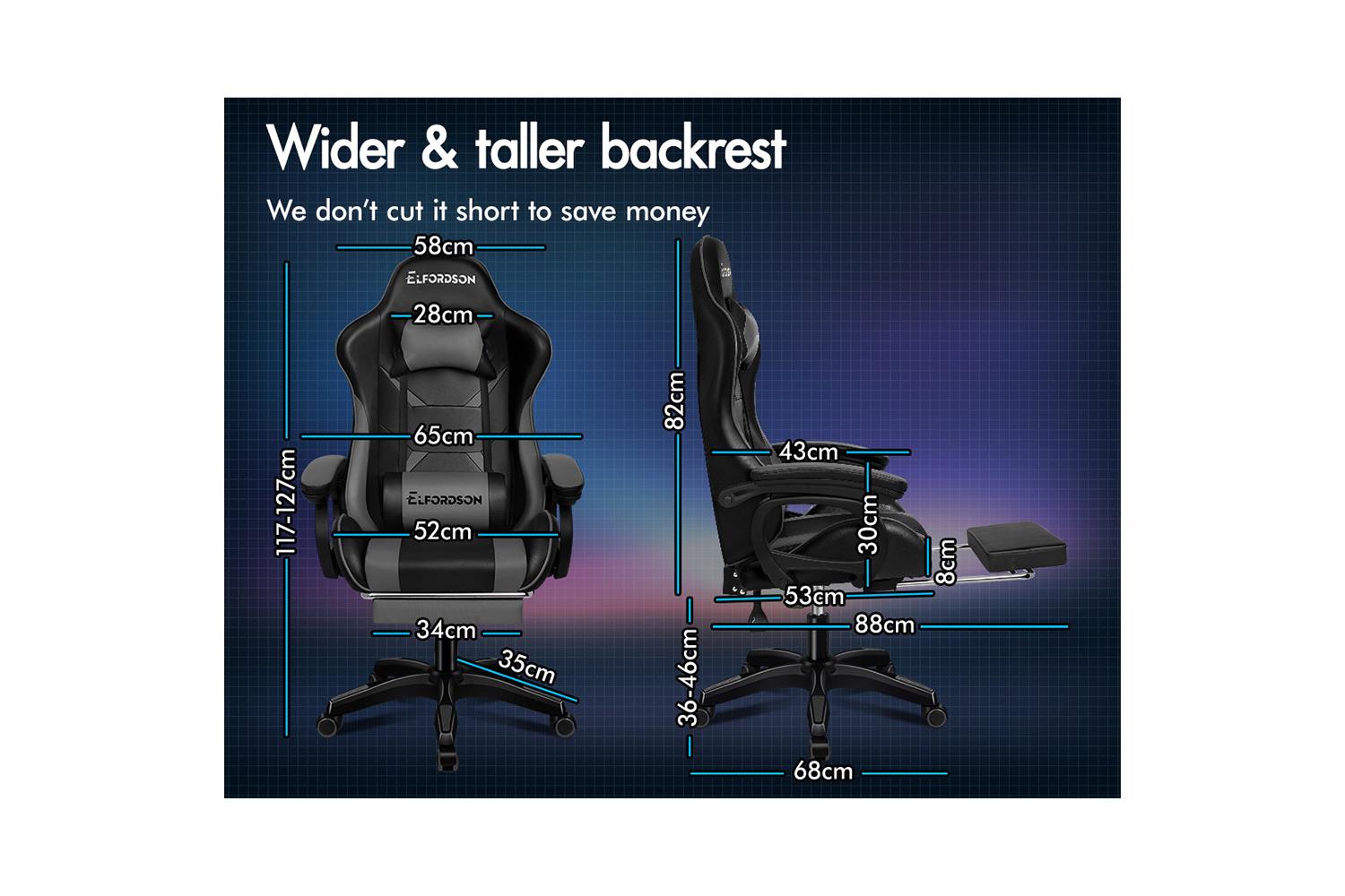 The Elfordson range is available in multiple colours and designs, browse Elfordson store and choose one that best suits you or your room. Take the stress out of work and experience superior comfort at your desk - order your Elfordson gaming office chair today!