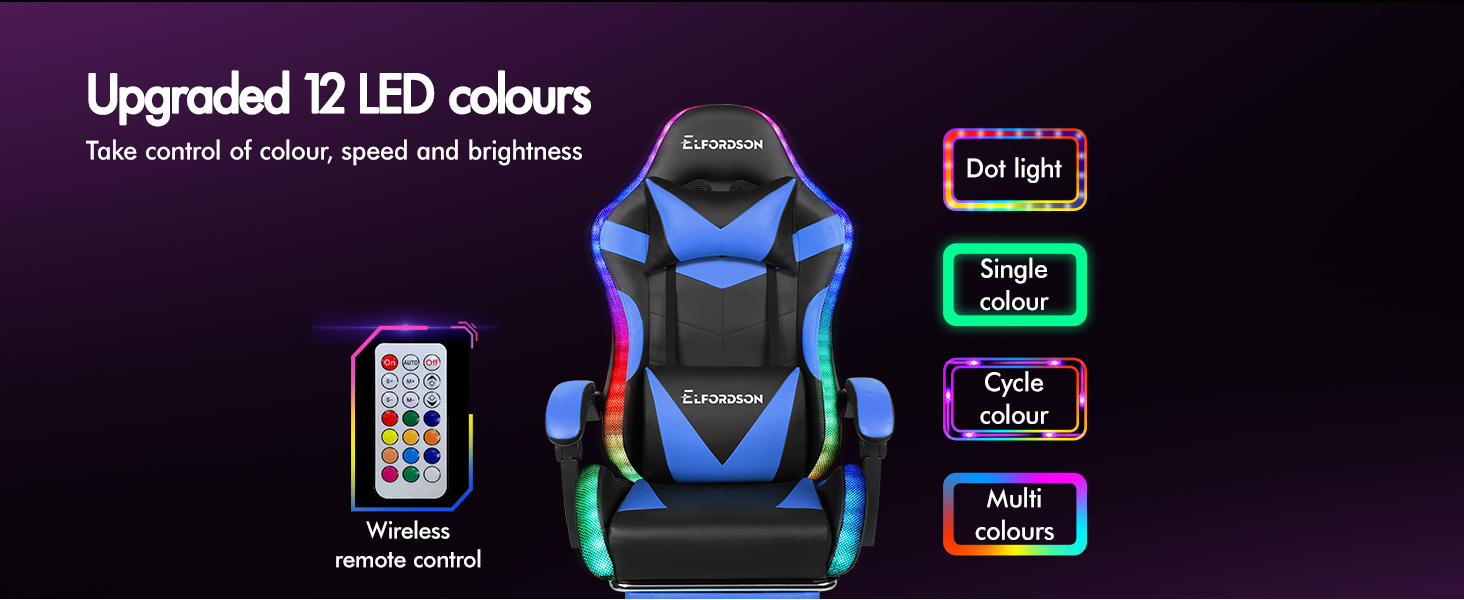 2 LED colours, 10 levels of light speed regulation, and 32 levels of brightness, all achieved by remote control. With the LED lights illumination in your gaming area, just create your own glory.