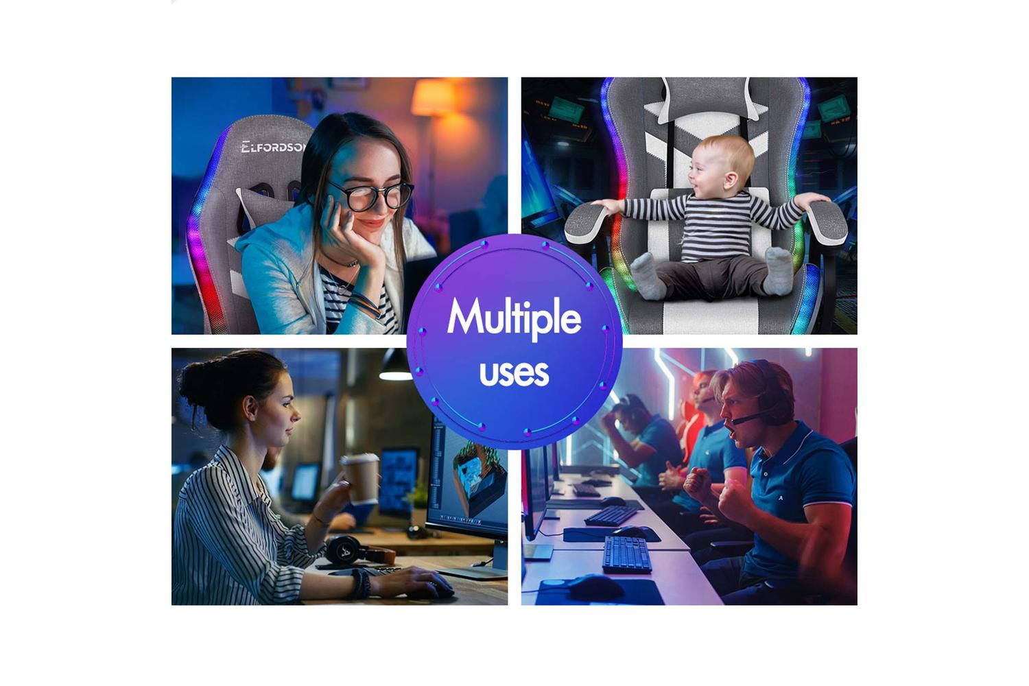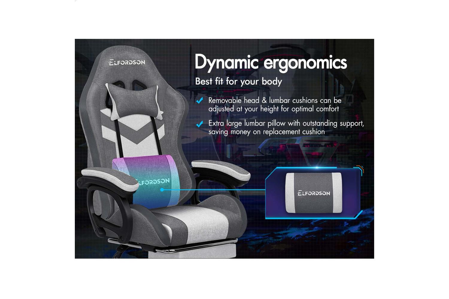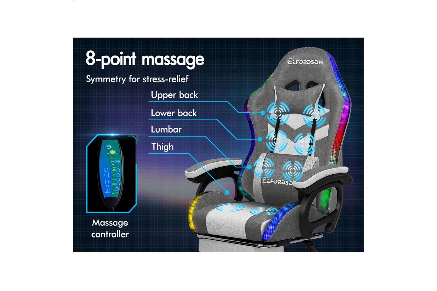 ELFORDSON LED & Massage Gaming Chair Fabric Collection