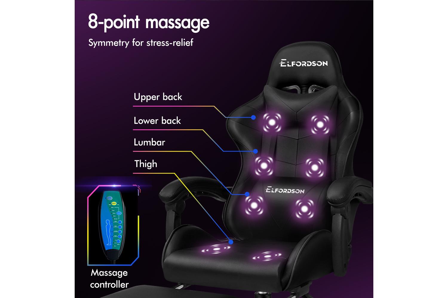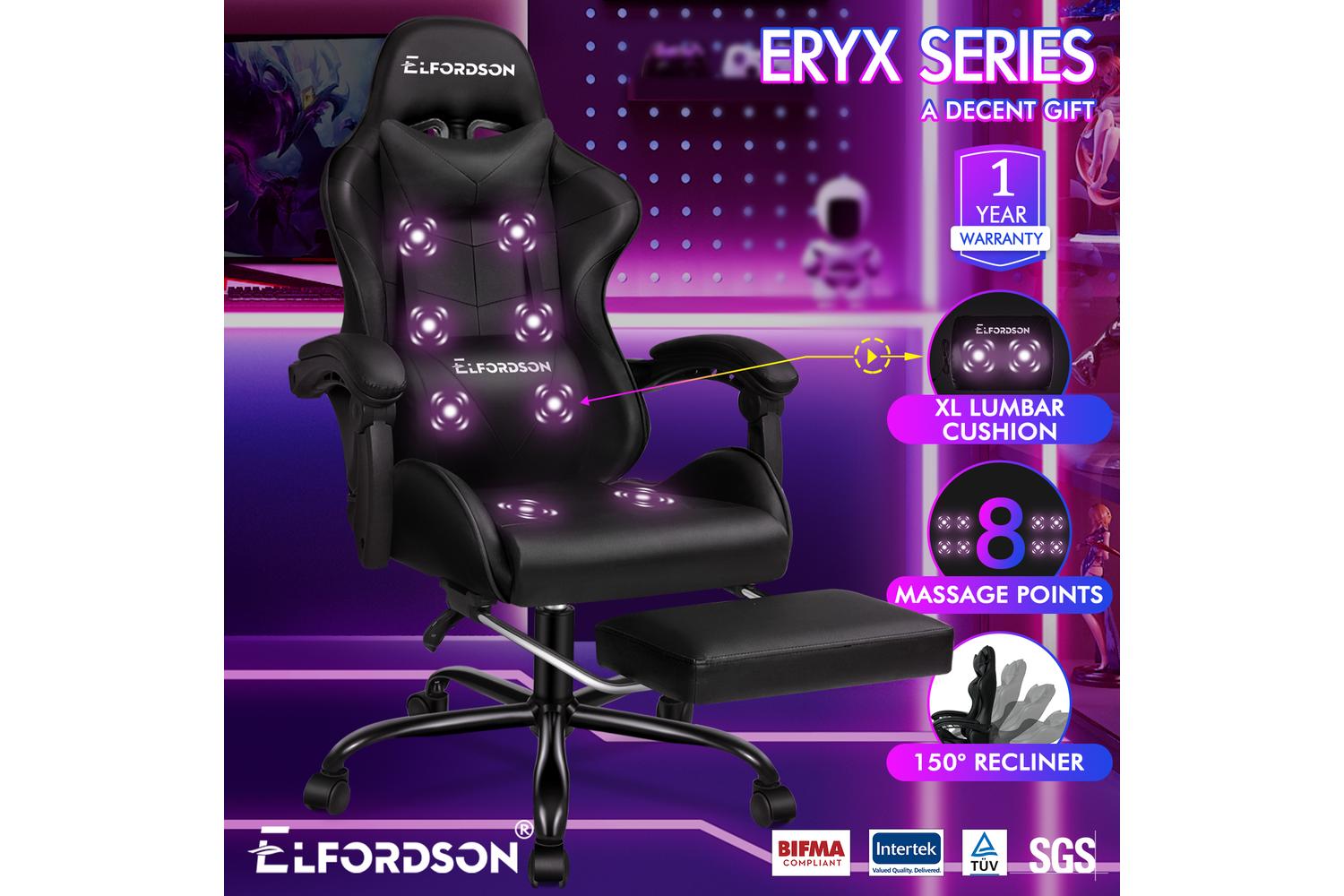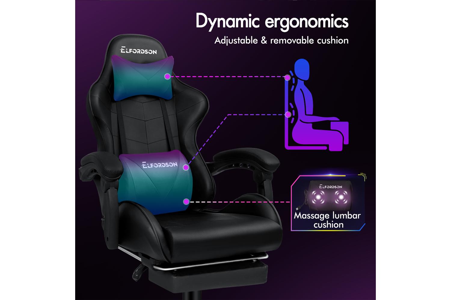 Elfordson Massage Gaming Chair with Lumbar Cushion | Black