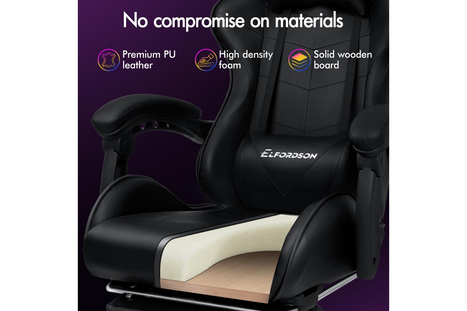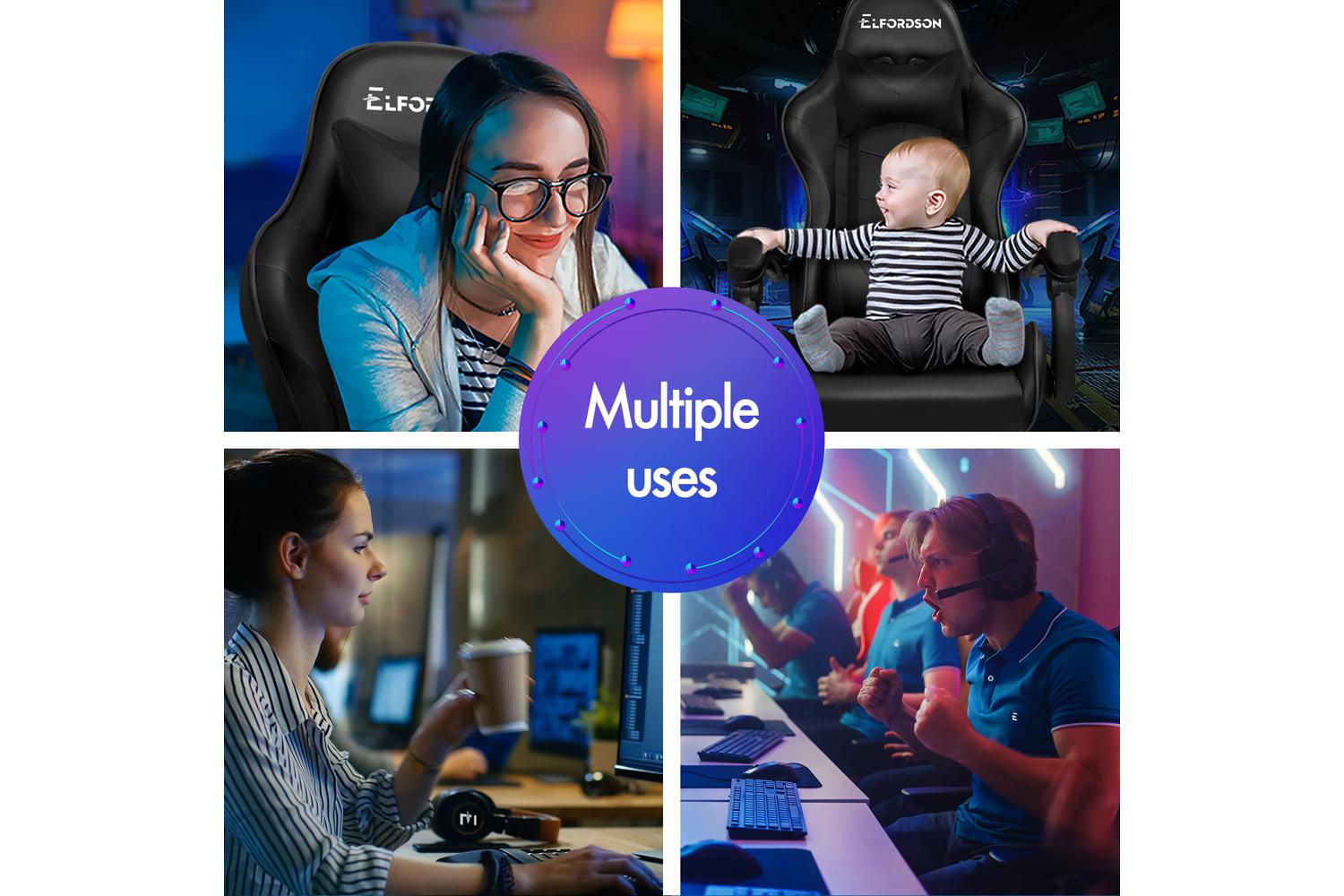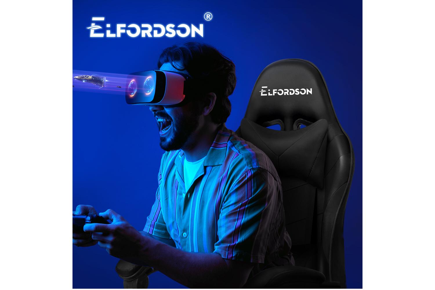 Elfordson Massage Gaming Chair with Lumbar Cushion | Black