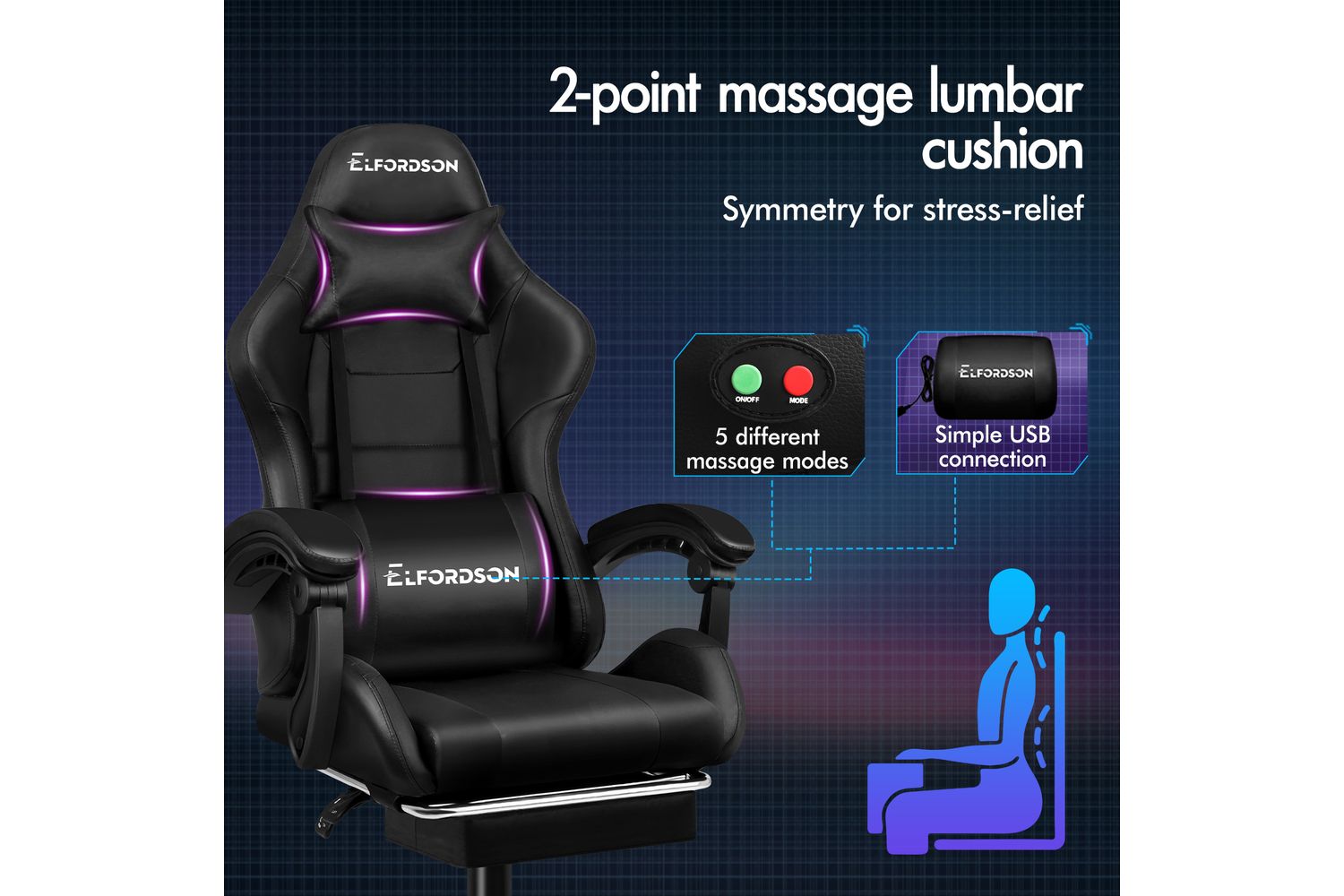 Elfordson Massage Gaming Chair with XL Lumbar Cushion | Black