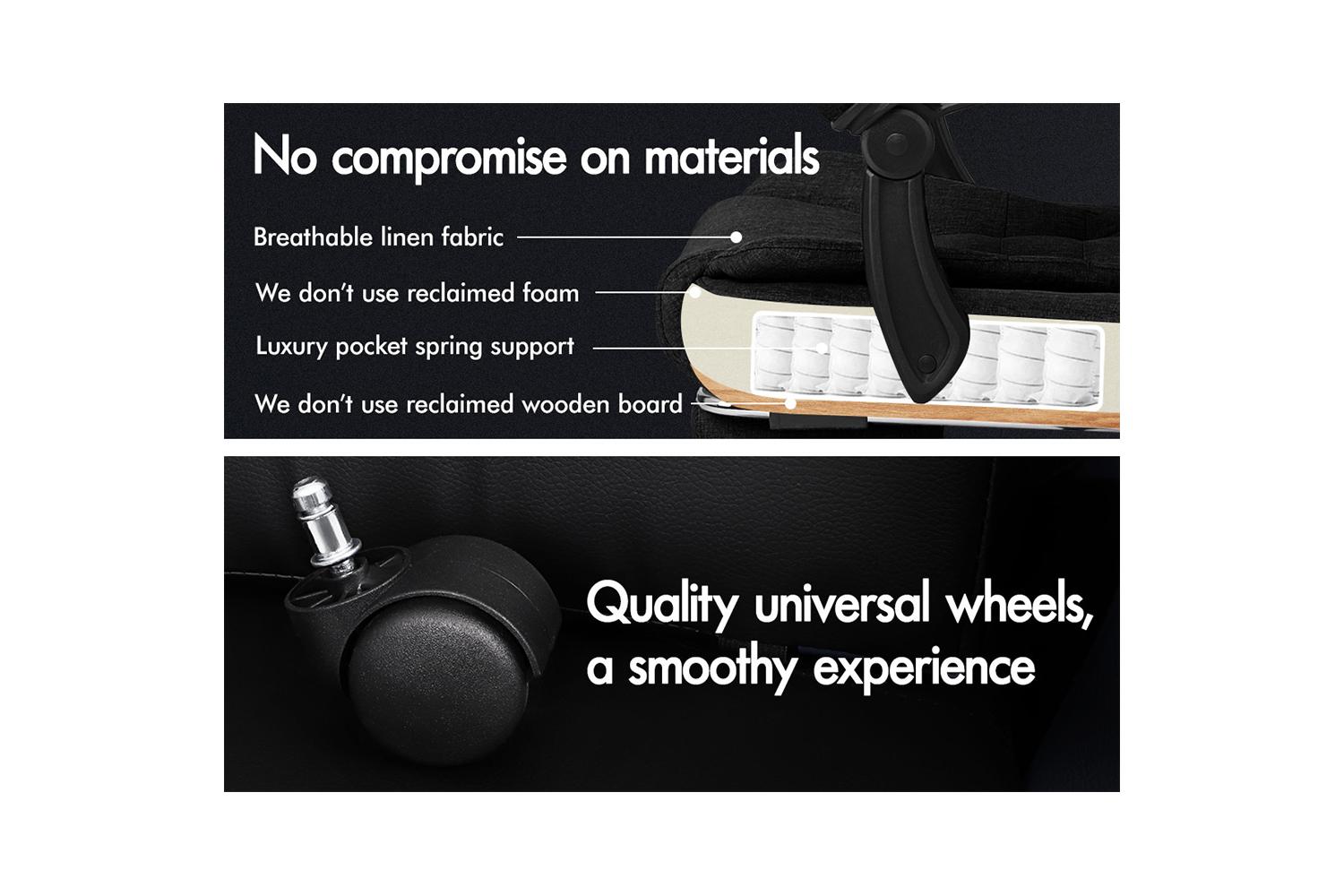 - Triple-layer seat: Linen fabric + Resilience foam + Wooden board