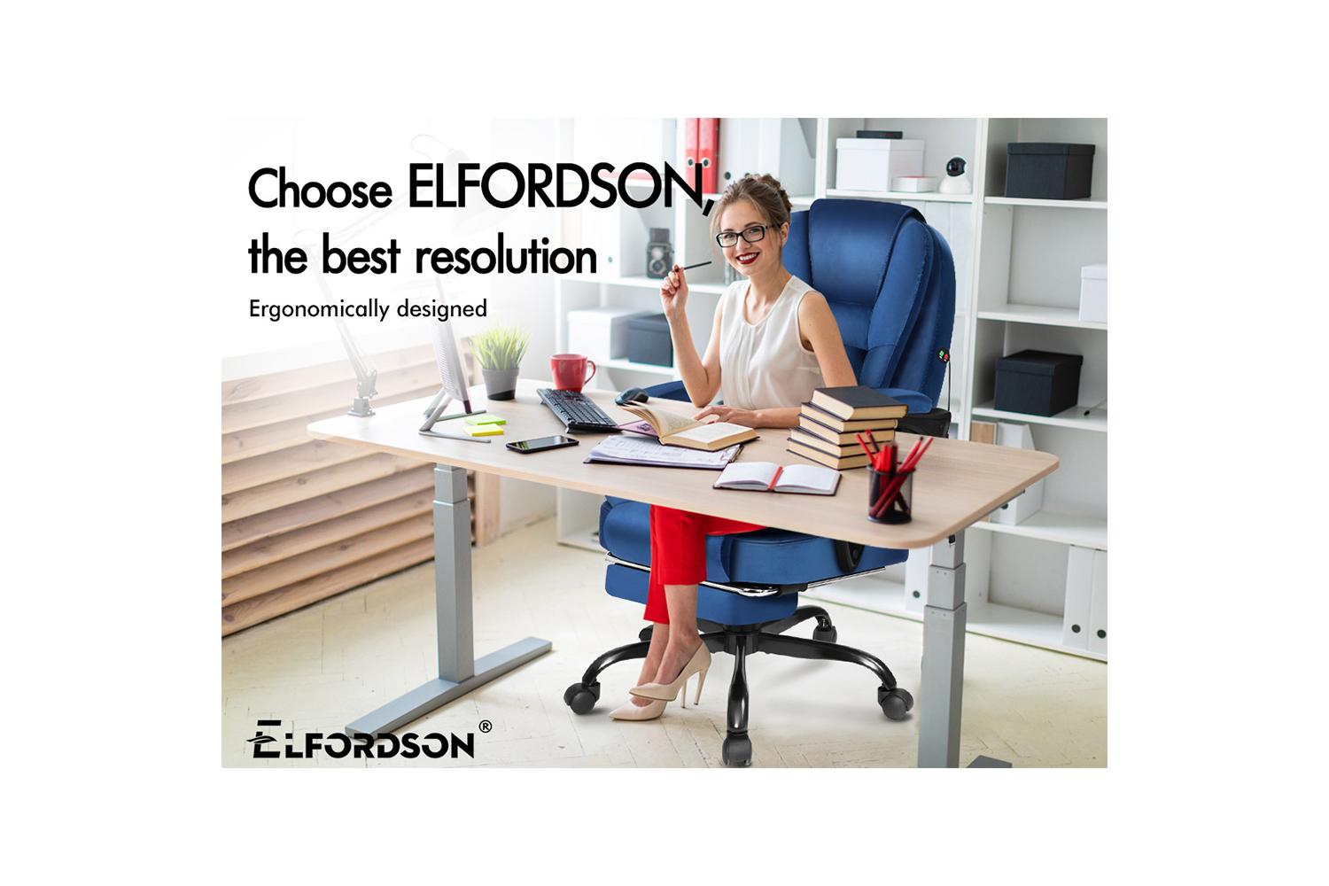 The Elfordson series is available in multiple colours and designs, browse Elfordson store and choose one that best suits you or your room. Take the stress out of work and experience superior comfort at your desk - order your Elfordson massage office chair today!