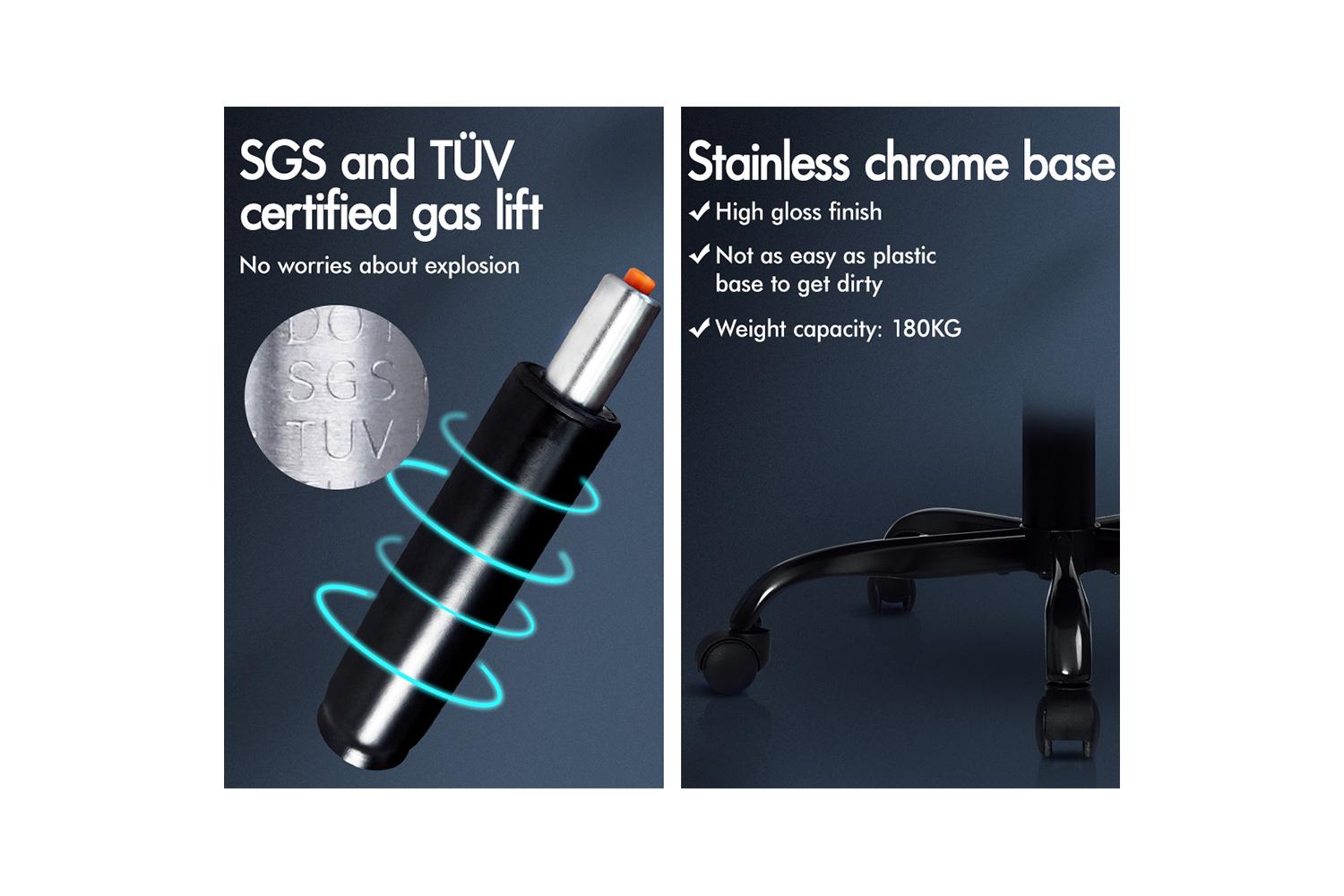 A stylish chrome base with TUV certified casters, Intertek approved velvet fabric, SGS approved Gas-Lift system and tilt function, delivering absolute five star luxury.