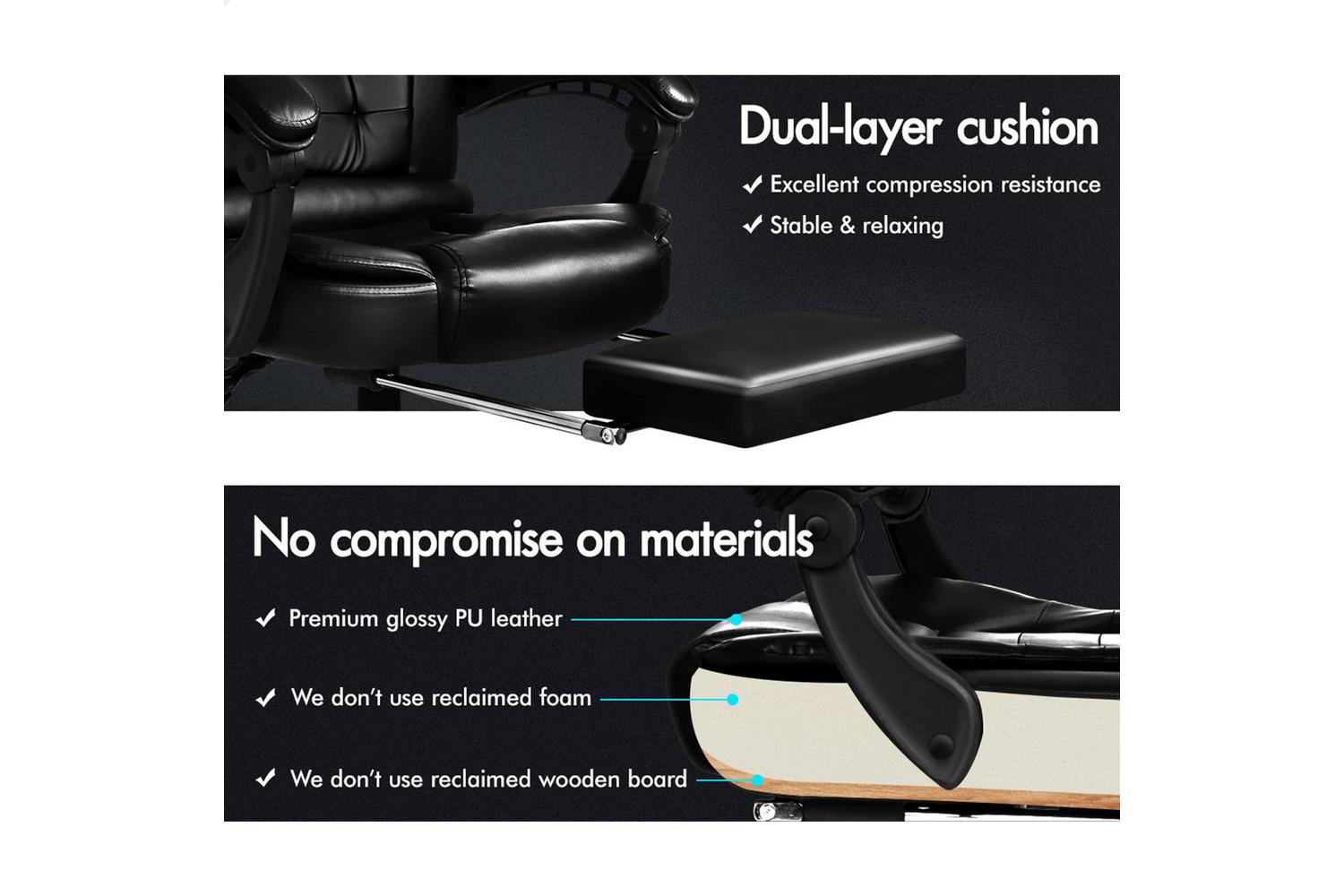 And unlike some other sellers, we have no compromise on materials used. We guarantee that no cycled foams are used, no backrest is cut short or narrow to save money, and no seat foam is cut thin to save cost.