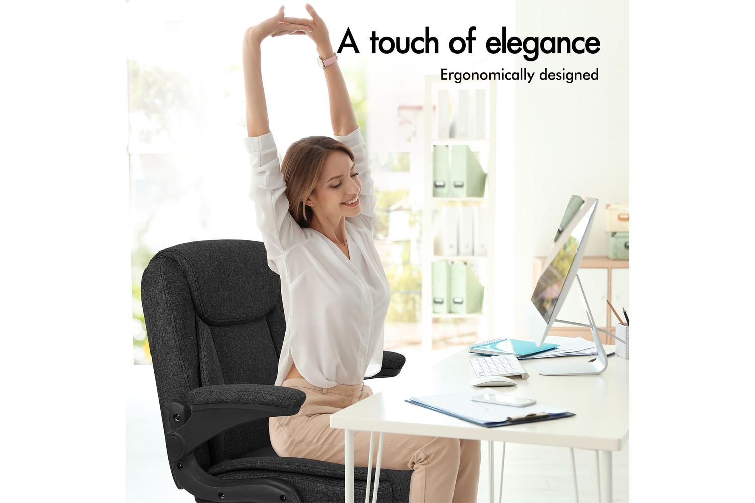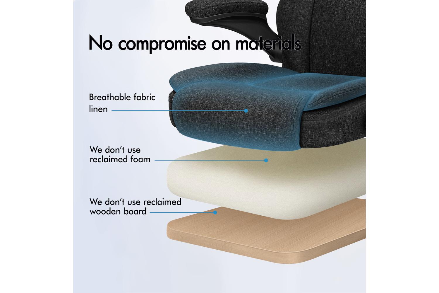 Crafted with premium materials including Linen fabric, TUV certified casters, SGS approved Gas-Lift system and tilt function, our office chair delivers absolute five-star luxury.