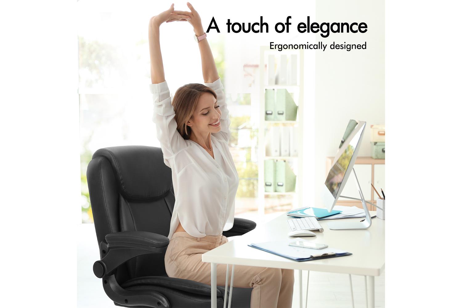 Crafted with premium materials including Intertek approved PU leather, TUV certified casters, SGS approved Gas-Lift system and tilt function, Elfordson office chair delivers absolute five-star luxury.