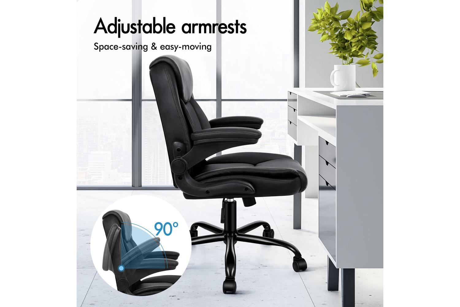 The adjustable armrests allow you to customize your sitting position with ease, or move the chair closer to your desk or workspace without the armrests getting in the way.