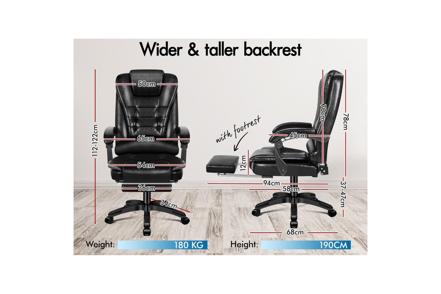 Crafted with innovation in mind, we upgraded the chair with 8 massage points and gentle seat heat function, allows you to work at your peak for long periods of time in optimal comfort. Built with premium PU leather, generous foam paddings and ergonomically-friendly design, Elfordson chair provides your entire body with ample support in all the right places. The chair perfectly combines both comfort and style.