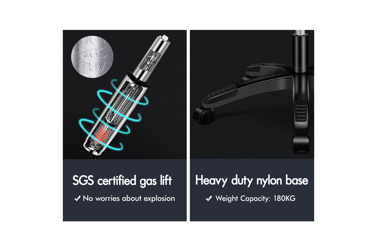 A stylish chrome base with TUV certified casters, Intertek approved PU leather, SGS approved Gas-Lift system and tilt function, delivering absolute five star luxury. And unlike some other sellers, we have no compromise on materials used. We guarantee that no cycled foams are used, no backrest is cut short or narrow to save money, and no seat foam is cut thin to save cost.