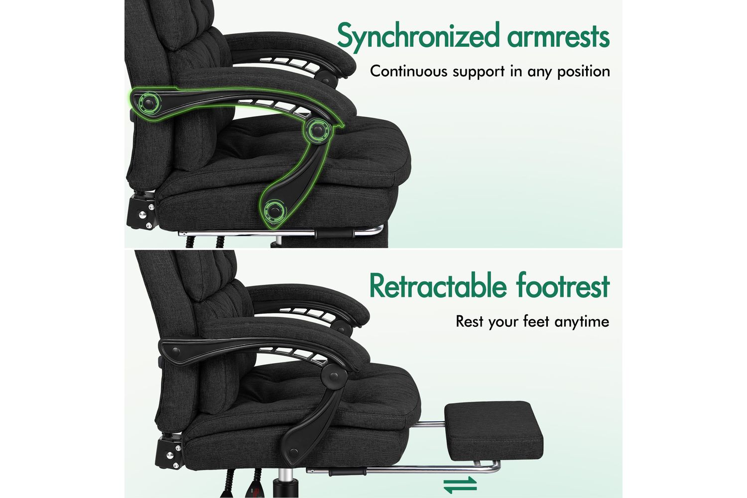 The Elfordson computer desk chair is an eternal model. It features a dual-layer back with luxurious foam paddings, to make sure you can indulge yourself each time sitting on it. Made with breathable & durable linen fabric, this modern reclining chair also enhances the atmosphere of the room it stays. An elite in quality and design, your solution to true comfort.