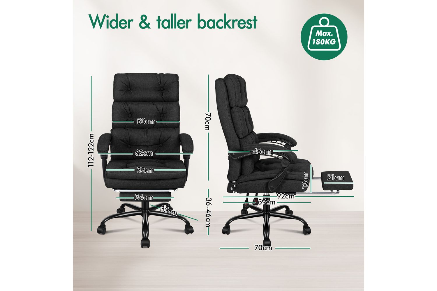 • High weight capacity: 180kg