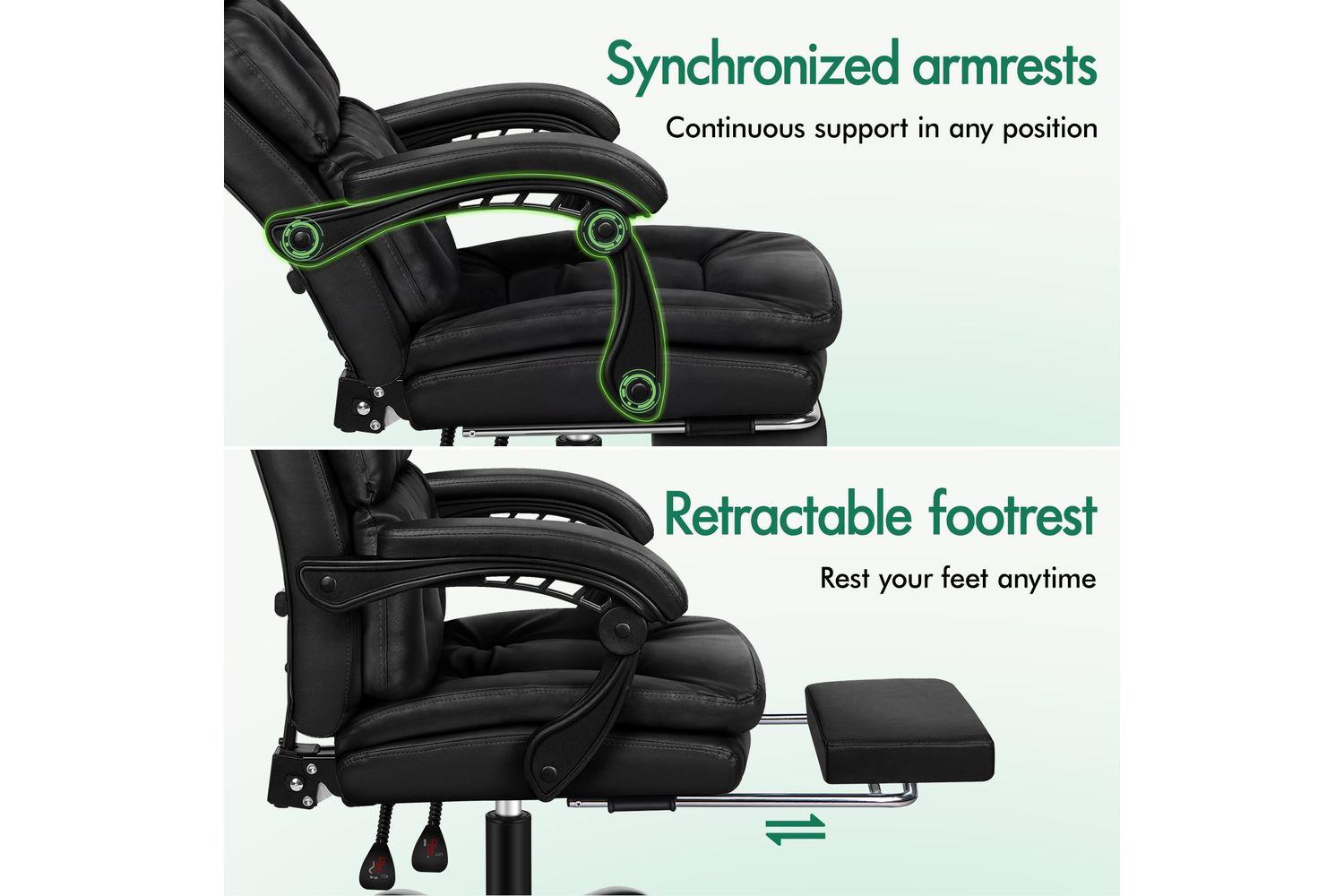 Engineered for ergonomic excellence, the Elfordson chair contours perfectly to your body, providing essential lumbar and back support. Whether you are working, studying, or relaxing, the 150 degree recline mechanism lets you find your ideal position with ease. The retractable padded footrest and wide, supportive armrests offer extra comfort, allowing you to stretch out and unwind whenever you need a break.