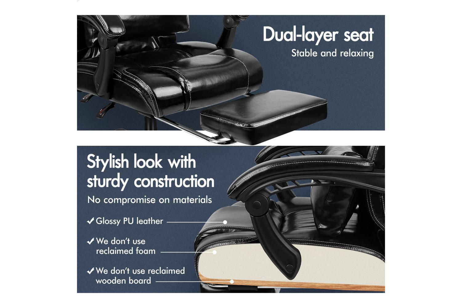 • Triple-layer seat: PU leather + Resilience foam + Wooden board