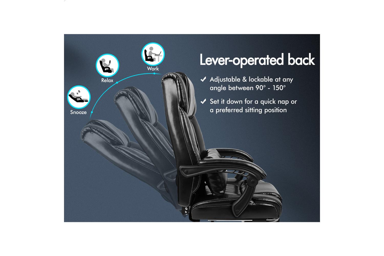 Whether you're sitting straight or leaning back, Elfordson generous 150 degree of recline mechanism accommodates effortlessly to your favorite posture while sitting, sleeping or playing games. Combined with retractable padded footrest and comfortable padded armrests, it gives the style and comfort you need.