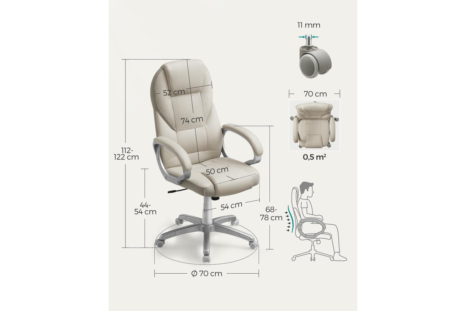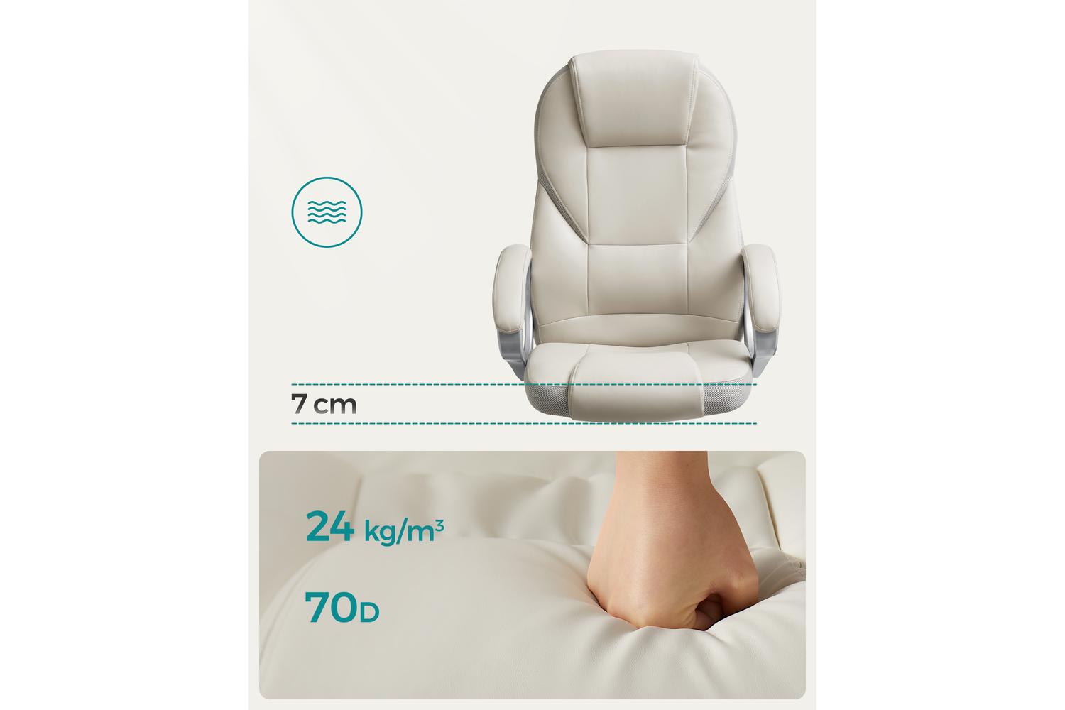 The SONGMICS Office Chair features an ergonomic backrest that contours to your body, reducing stress on your neck, shoulders, and back. This thoughtful design encourages a healthy sitting posture, helping you maintain concentration and productivity. The seat, backrest, and armrests are padded with high-quality, dimensionally stable foam, providing a plush yet supportive feel that stands up to daily use. The generous distance between the armrests (69 cm) and their adjustable height (68-78 cm) ensure a tailored fit for users of all sizes.