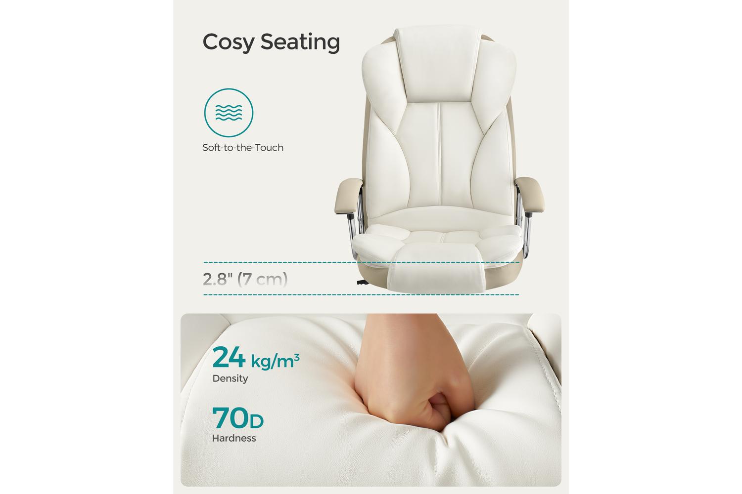 Built to last, the SONGMICS Office Chair features a secure gas pressure cylinder, a robust metal base, and optimised screws that remain tight even after extended use. The high-quality PU leather surface is not only comfortable and stylish but also easy to clean, making it perfect for busy Irish households. Thick, highly elastic padding ensures superior seating comfort and long-lasting shape retention, while durable nylon wheels glide smoothly across any floor type.