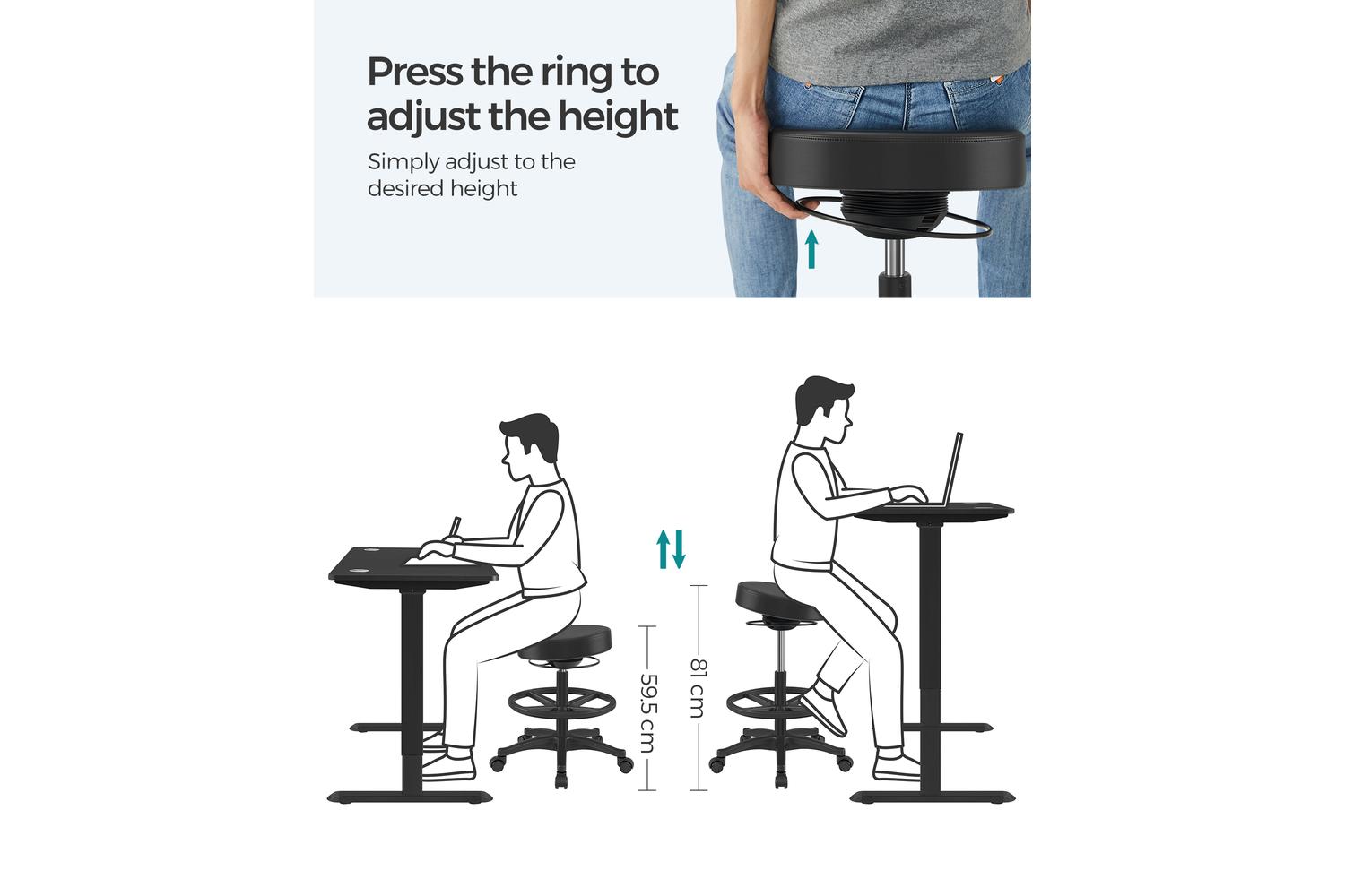 Transform your home office with the SONGMICS Standing Chair, designed for those who value both comfort and a healthy work style. This innovative office chair is perfect for Irish professionals seeking to boost productivity while supporting better posture throughout the workday. With its dynamic 360° swivel and unique rocking motion, this chair encourages movement, making long hours at your desk more enjoyable and energising.