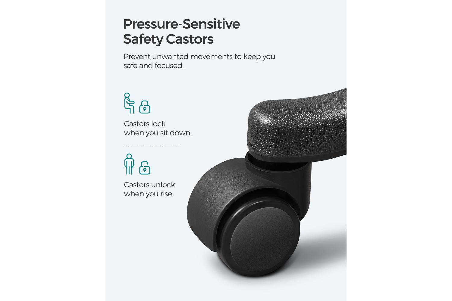 Worried about stability or floor damage? The SONGMICS Standing Chair is built with a robust 5-star base, supporting up to 110 kg, ensuring safety and stability in any position. The durable PU casters automatically lock when seated, preventing unwanted movement and protecting your floors—even on delicate wooden surfaces.
