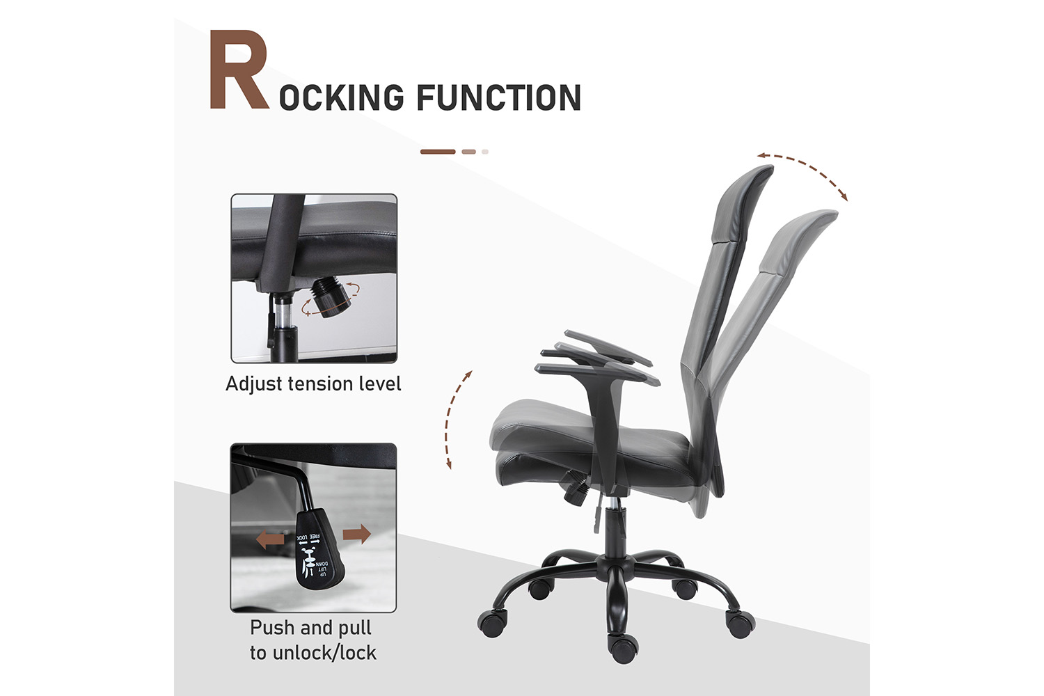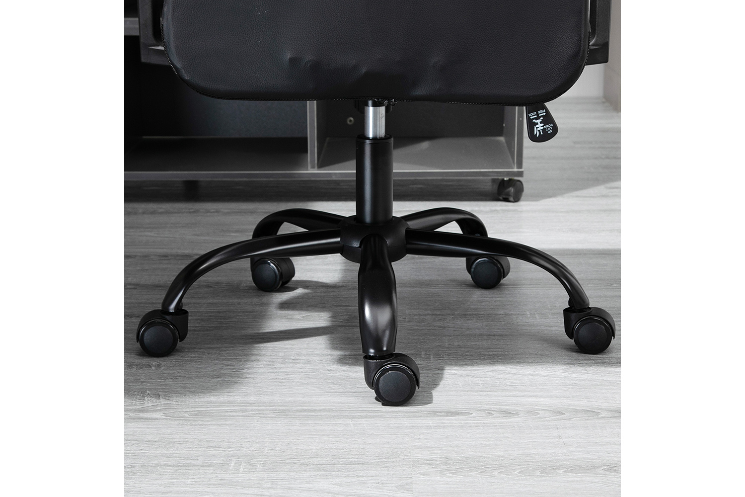 Make working from home comfortable with this Vinsetto home office chair. Featuring a curved line design with thick padding and soft fabric, the computer desk chair provides extra comfort for long periods. You can adjust the seat height to get a better sitting experience. The 360 wheels provide convenience so you can get around your home office without having to get up. The rocking function allows you to lean back and take a quick break.