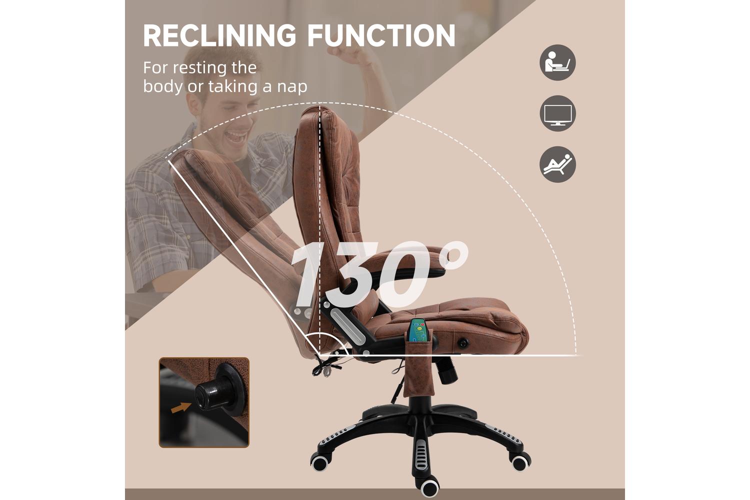 Immerse into the comfort of the six massage points and heating function that this top-of-the-range massage recliner chair offers. It's unique as it melts away aches and pains, ensuring that you remain focused and invigorated as you handle your office work. Back reclines to an impressive 130° angle enabling you to switch between work mode and rest mode seamlessly.