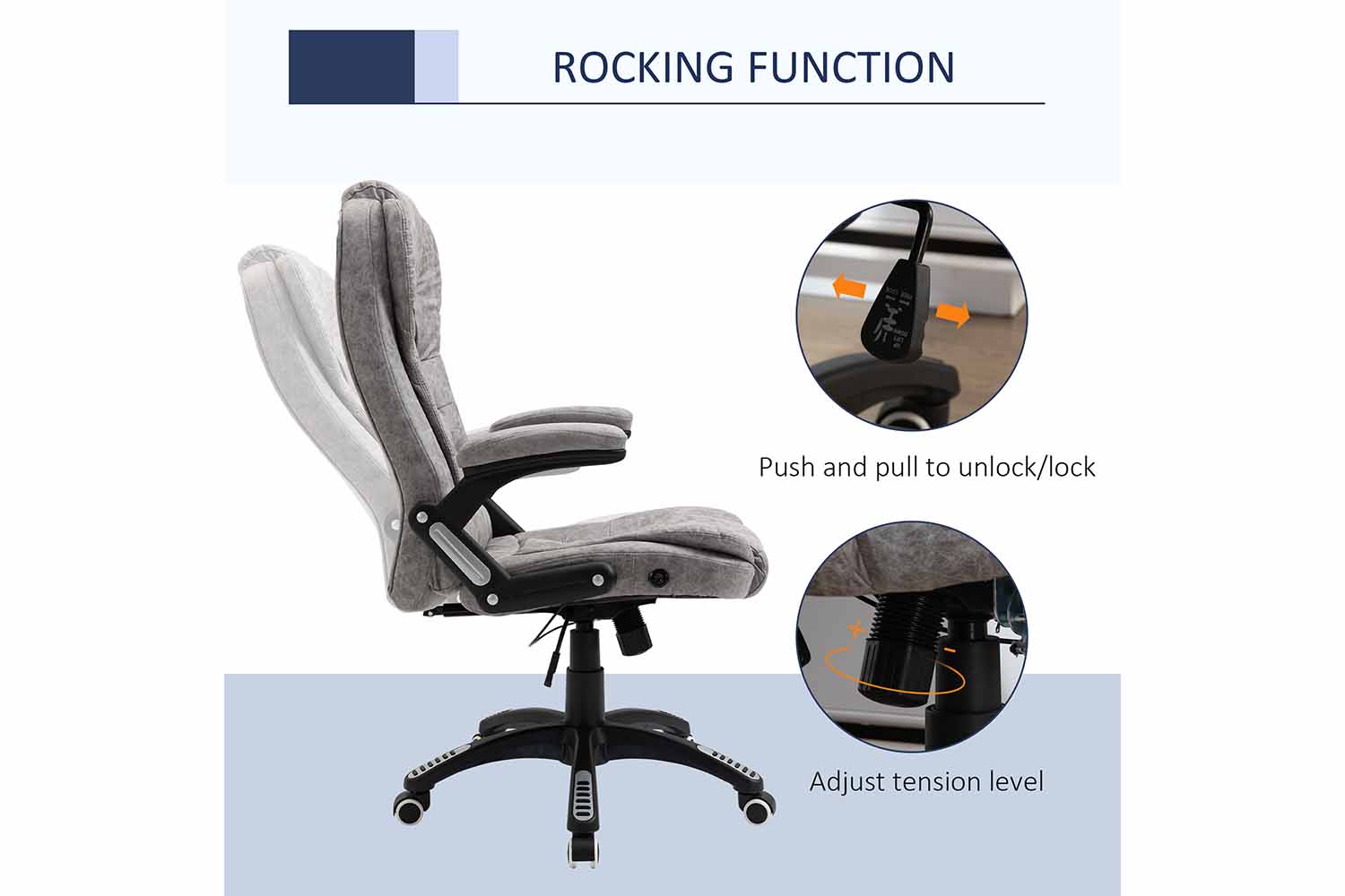 Recline the backrest and experience a gentle rocking motion for relaxation