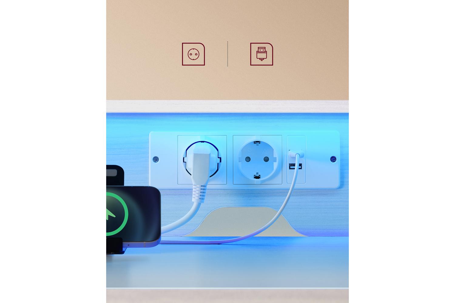 - 2 electrical outlets and 2 USB ports for convenient device charging