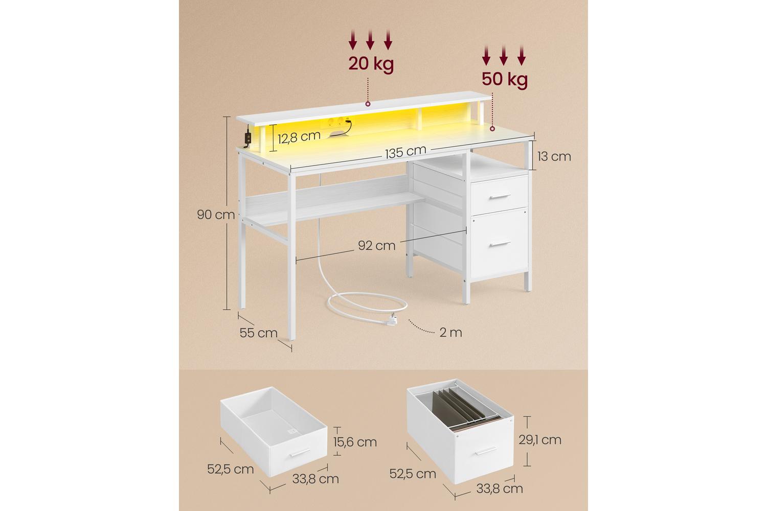 Organisation is effortless with the VASAGLE Computer Desk. The spacious desktop provides ample room for your computer, paperwork, and accessories. An open compartment is ideal for storing books or folders, while the upper drawer keeps your office supplies within easy reach. The lower drawer, complete with a hanging file system, ensures your important documents are always neatly organised and accessible. This desk is perfect for busy professionals, students, and gamers who value both style and functionality.