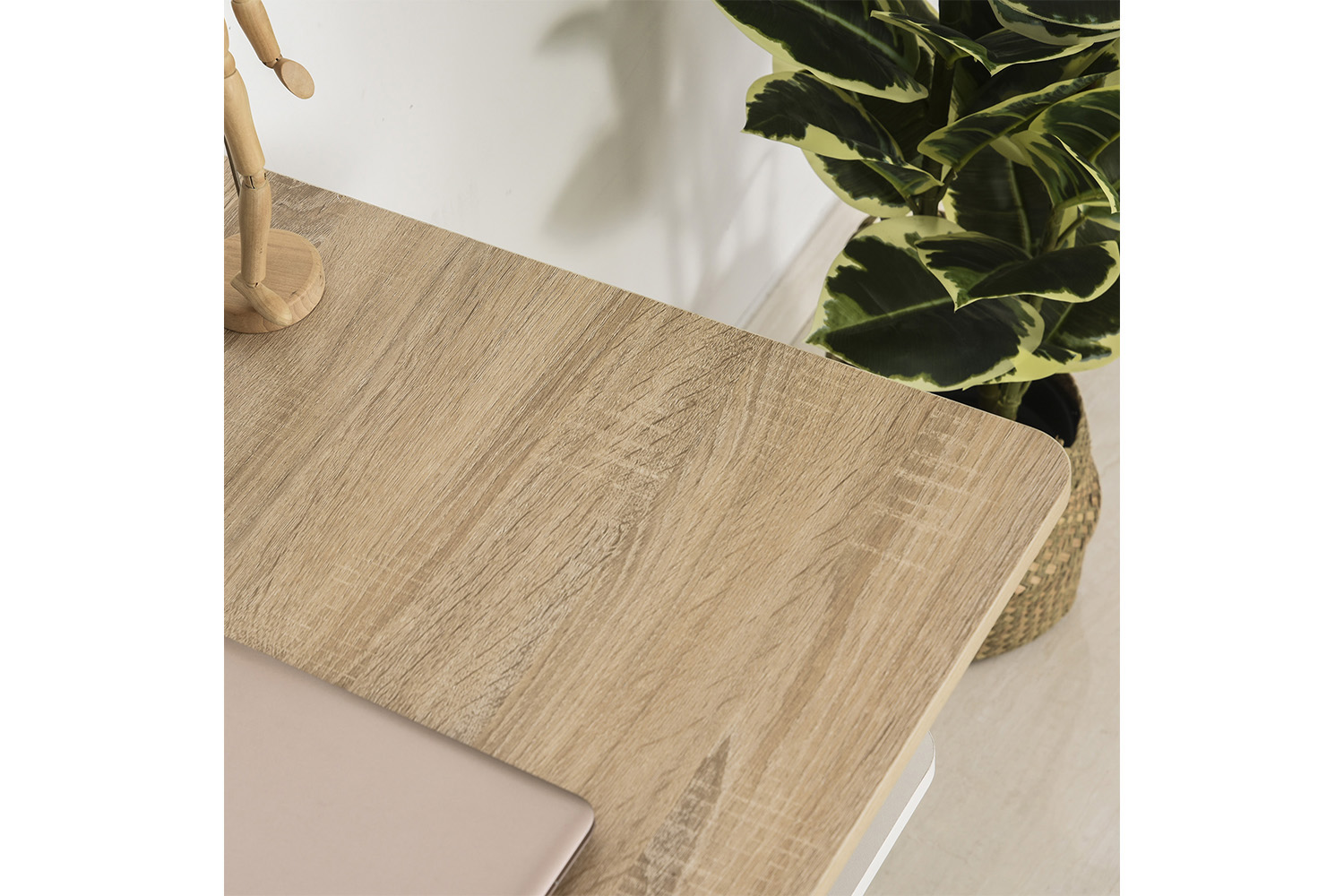 - Oak with white accents completes this indoor using desk