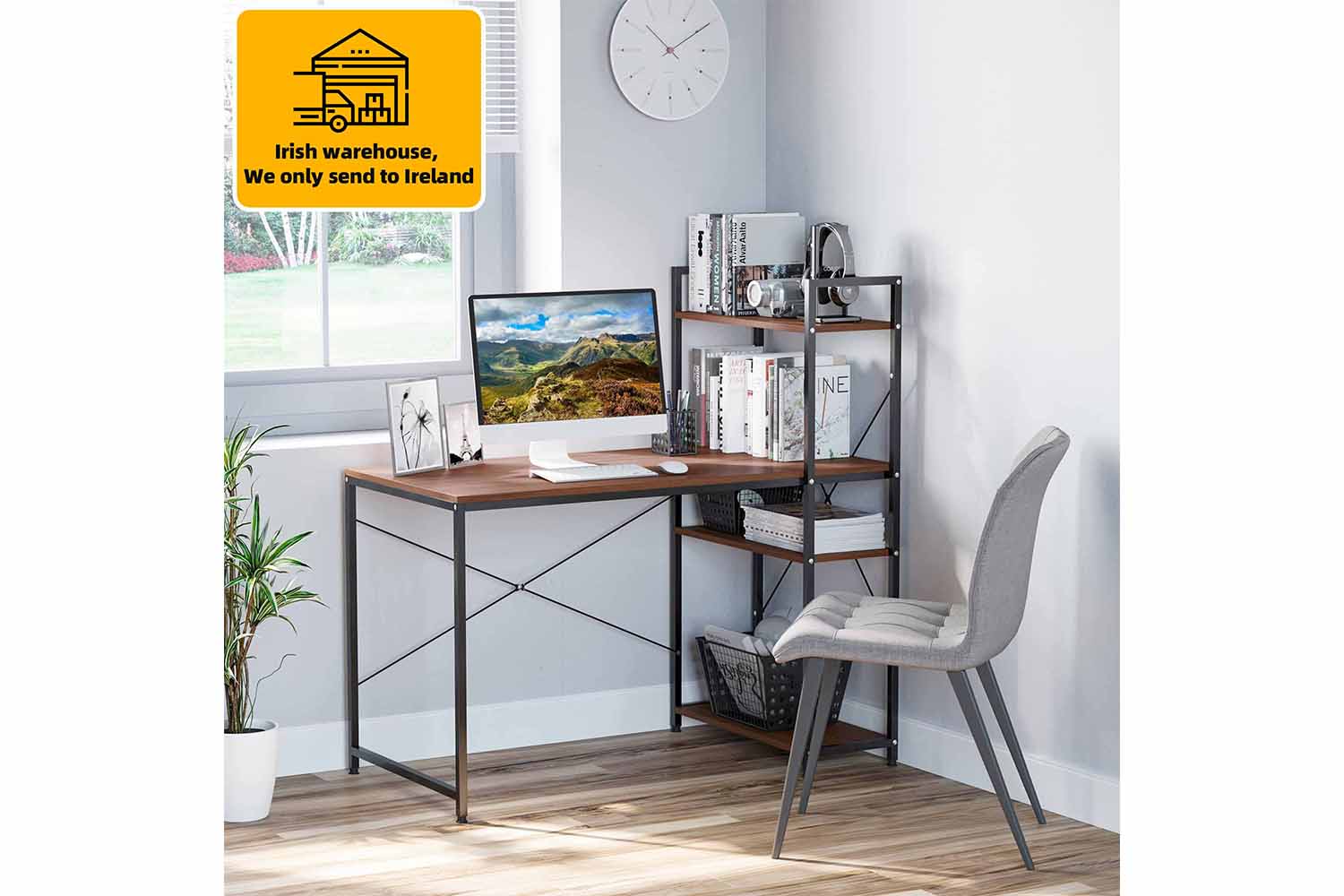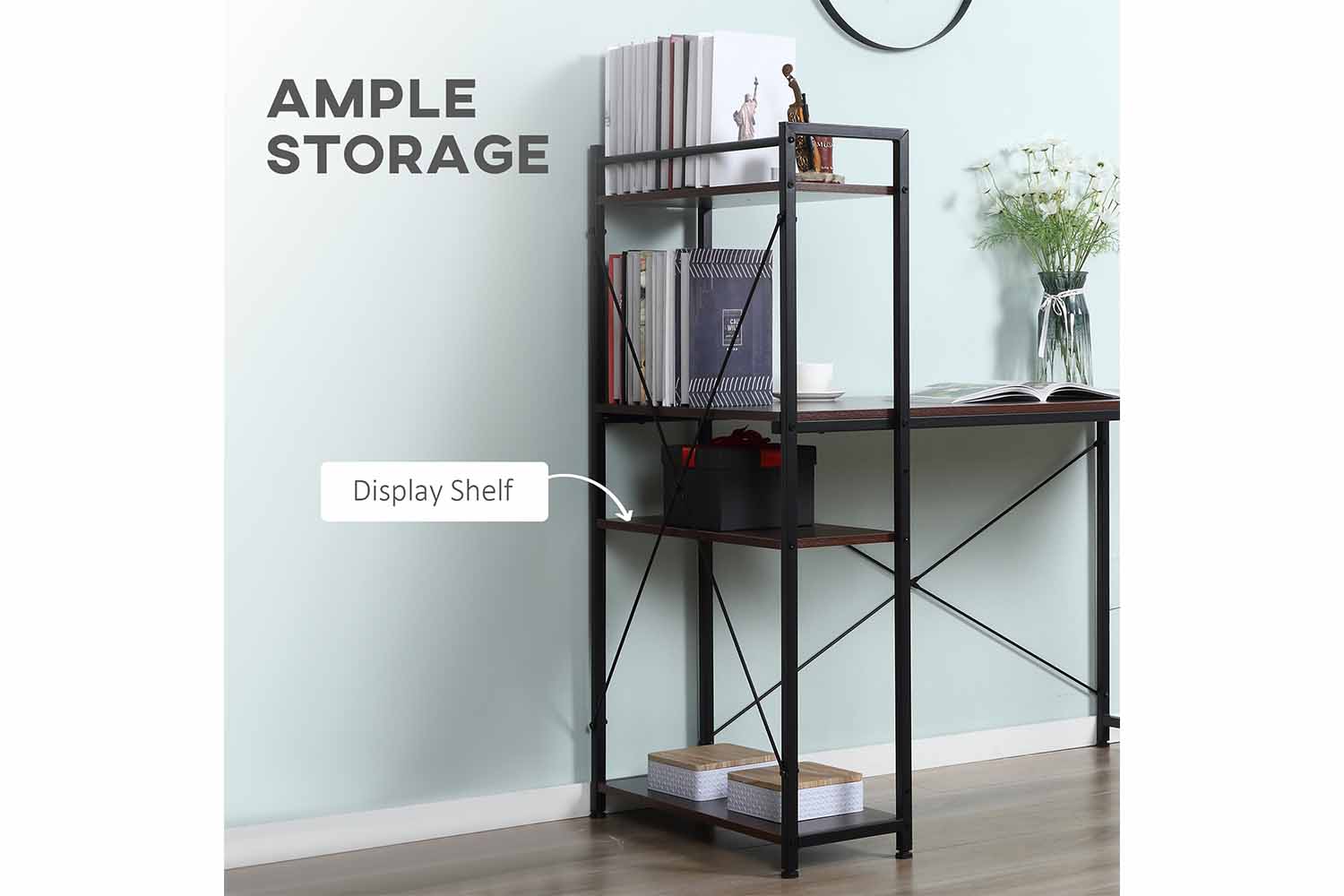 The modern stylish computer desk from HOMCOM is designed with space saving and multifunction in mind. It comes with a 4-tier bookshelf which can be assembled on left or right side as required. The large open area underneath enables you to comfortably stretch your legs after long working hours. With elegant and functional design, this computer desk is an ideal addition to your study or living room and can be used for either home or office.