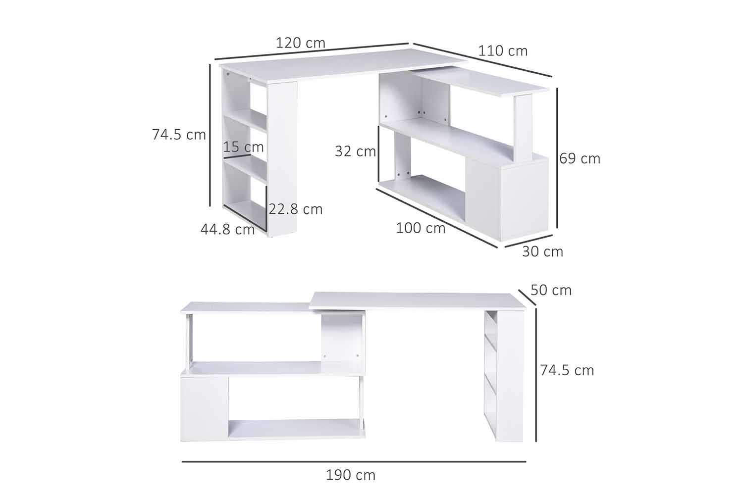 - Desk dimensions: 120 x 50 x 74.5 cm (L x W x H)