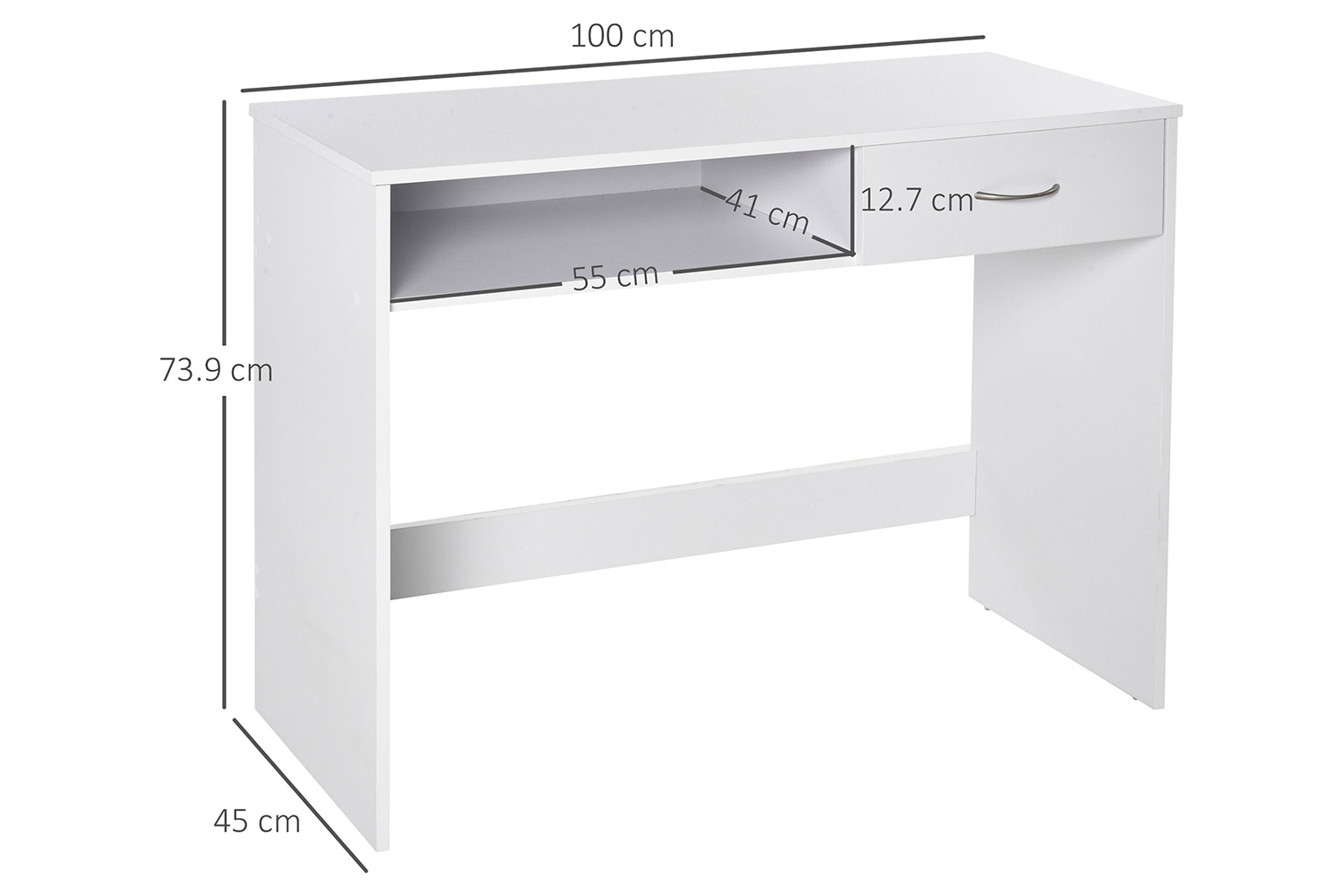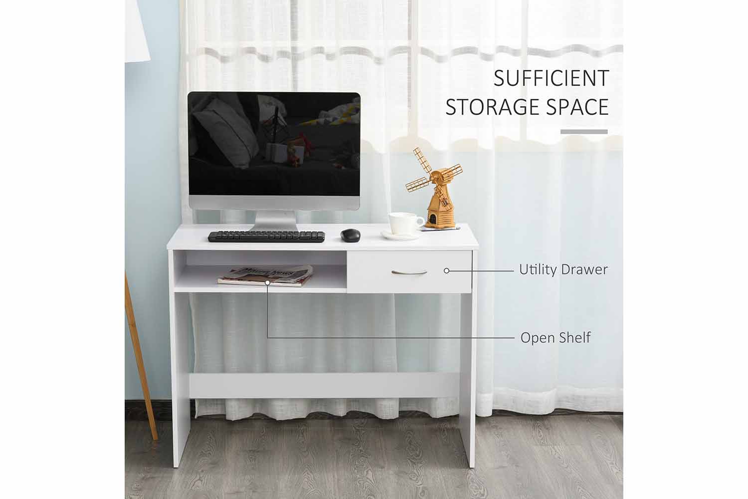 Endless home style doesn't have to be complicated - exactly why this home office desk from Homcom is on point. Made from solid particle board, and crafted into a clean boxy shape, the work desk looks great in all home and office spaces. It features an open shelf, a drawer and a large table top to give you lots of work and storage room. Besides, it's finished with a melamine coating for light protection against everyday wear. A simple home statement which does more than just look great.