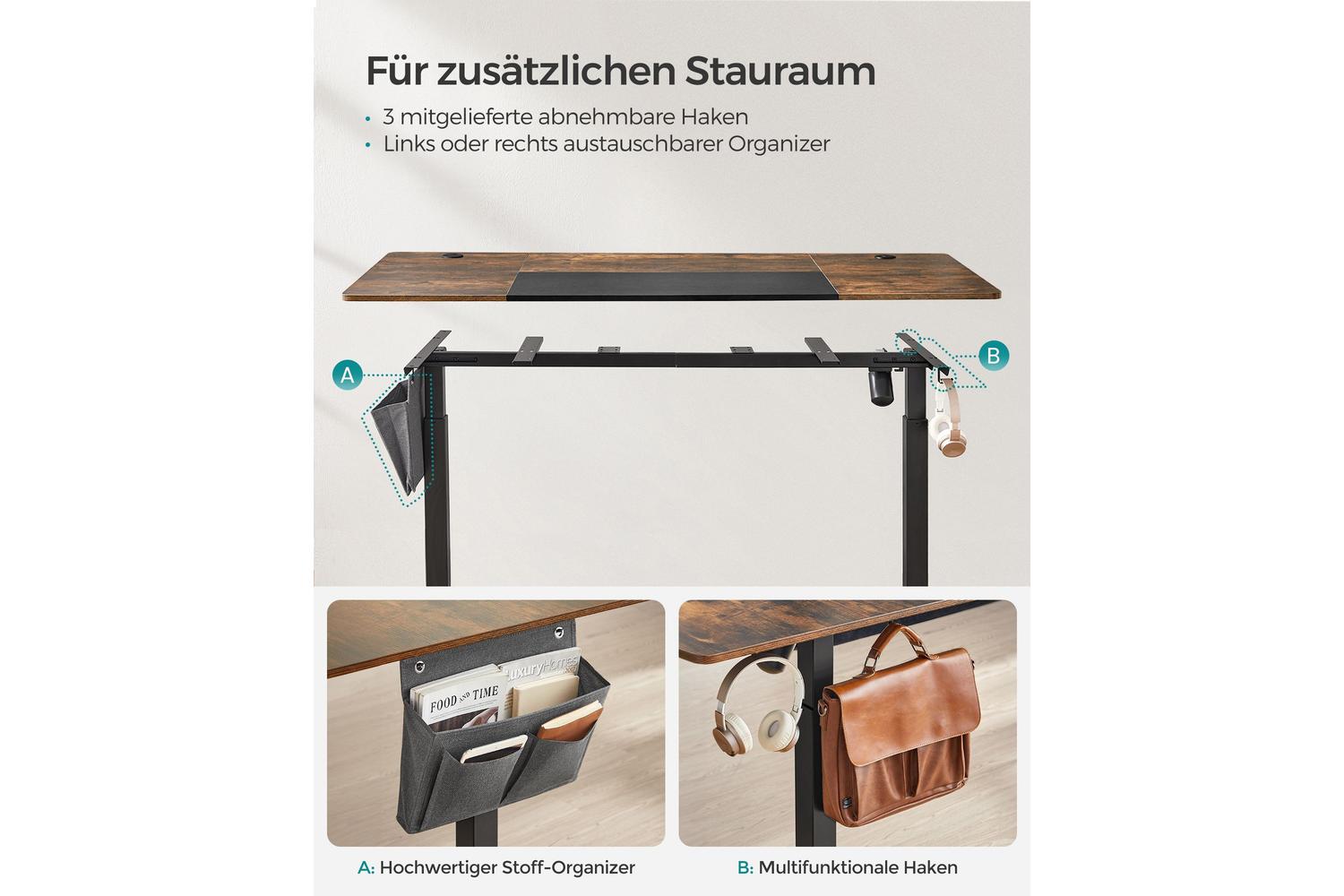 Practical features like the included storage bag and three handy hooks keep your workspace tidy, while the easy-to-use controller and adapter make height adjustments effortless. Assembly is straightforward with the included accessory pack and clear instructions, so you can set up your new desk in no time and get straight to work.