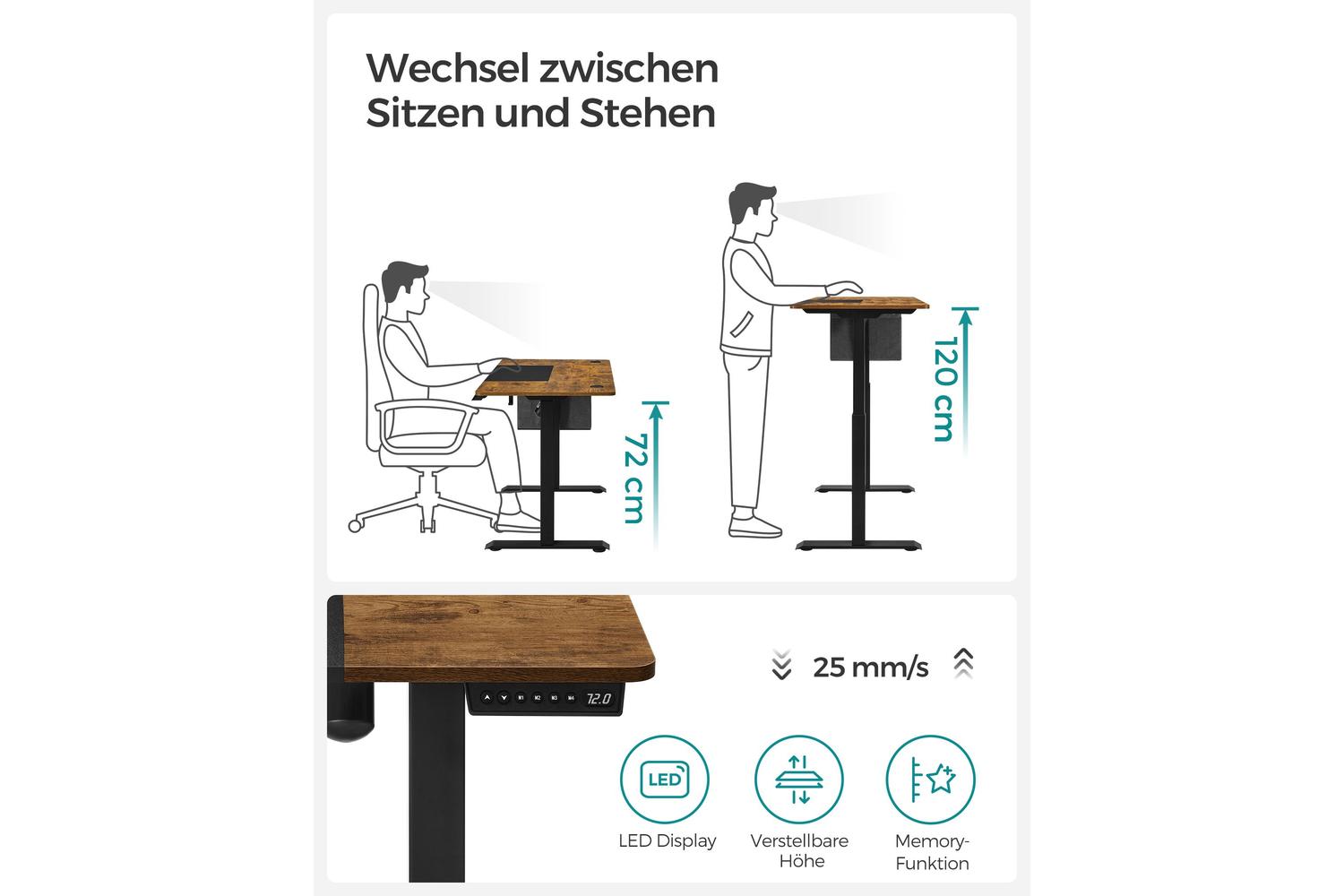 - Height Adjustable: 72-120 cm (Electric)