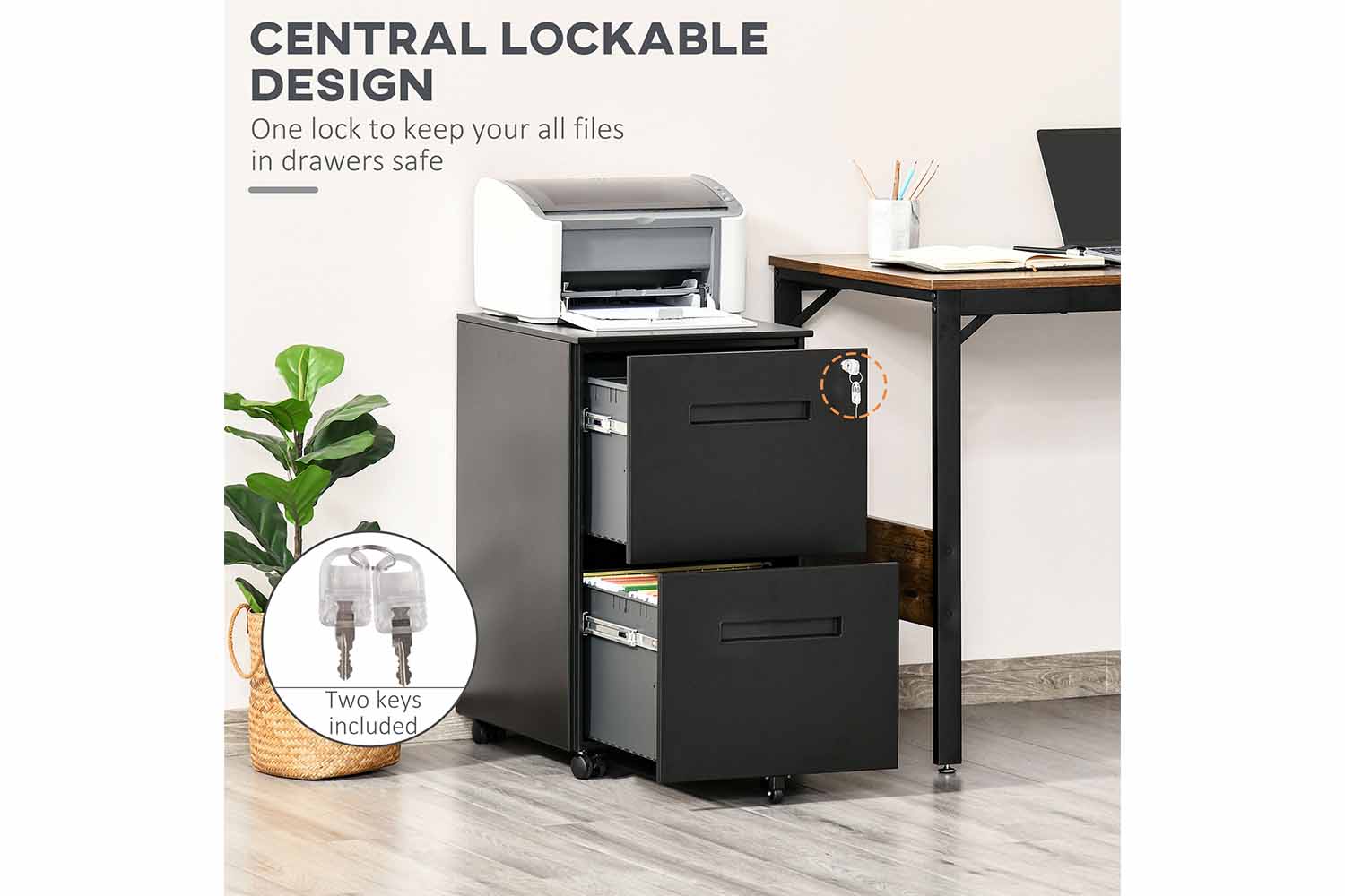2 drawers are designed for hanging A4, letters, and legal-sized files