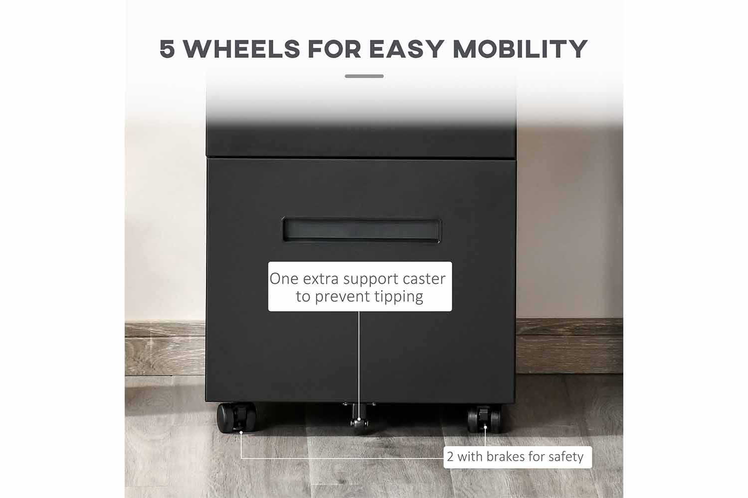 Choose Homcom filing cabinet, make your files a perfect storage space. It is ideal to store papers, files, books, and other office supplies with good capacity. Drawers are specially designed for hanging letter-sized files. A removable rod to keep the files in place when the drawer is not full and can also be adjusted to classify files. The minimalist style goes well with contemporary or modern home and office decor. Just buy Homcom filing cabinet to fill your home and office space!