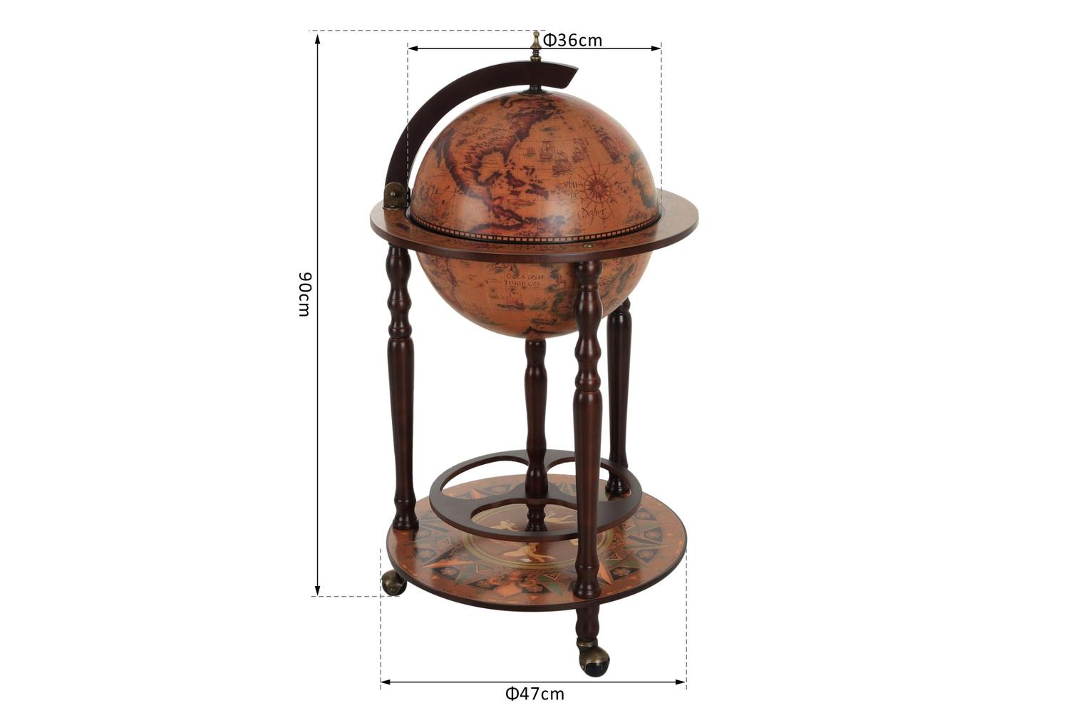 Bask in the old world charm of this essential piece of occasional furniture. Covered with an exquisite old world map, this globe mini-bar stands as a proclamation of your refined taste. It visually catalogs the human migration history on its outside, while the serene doves within speak of a peaceful message, effectively combining aesthetics with a narrative.