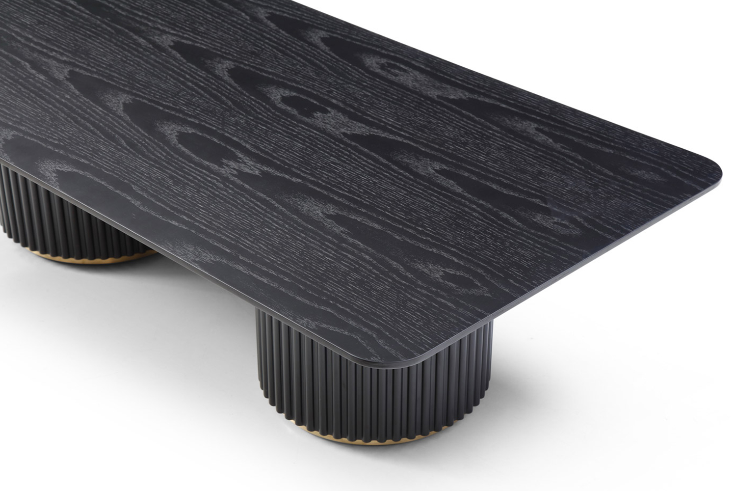 • Matte black lacquered ribbed double pedestal base