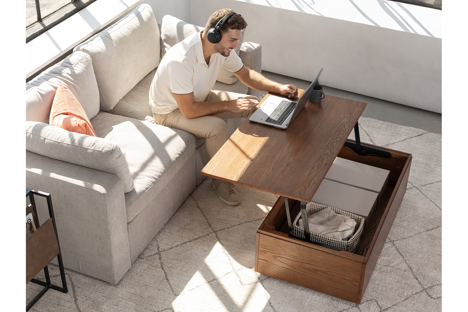 Bring smart design into your living room with the Transformer Coffee Table, a lift-top coffee table that offers modern functionality in an elegant, compact form. Thoughtfully crafted from durable, high-quality wood, this coffee table features an integrated storage compartment that discreetly holds your Transformer Table panels and everyday items, keeping your space tidy without compromising style.